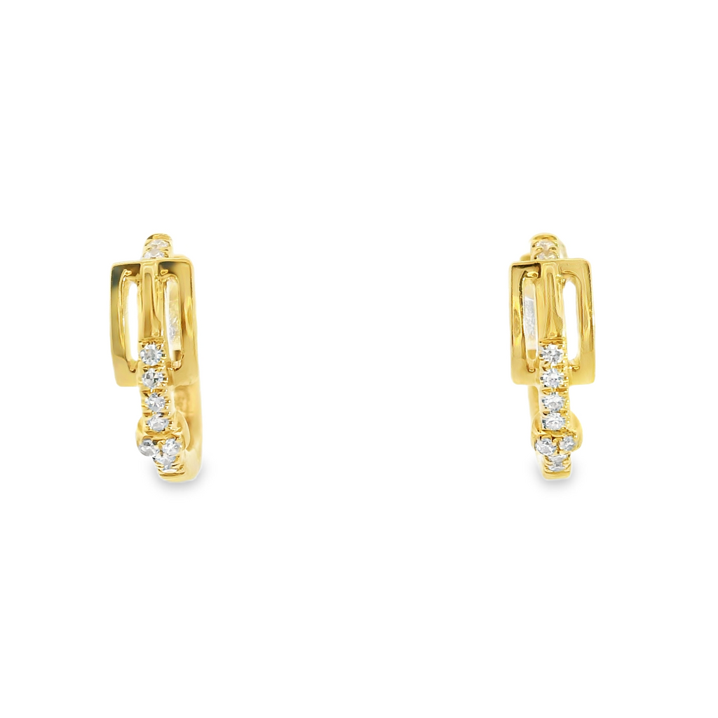 14K YG Buckle Diamond Hoop Earrings