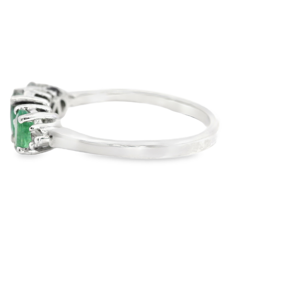 Sterling Silver Emerald & Diamond Ring