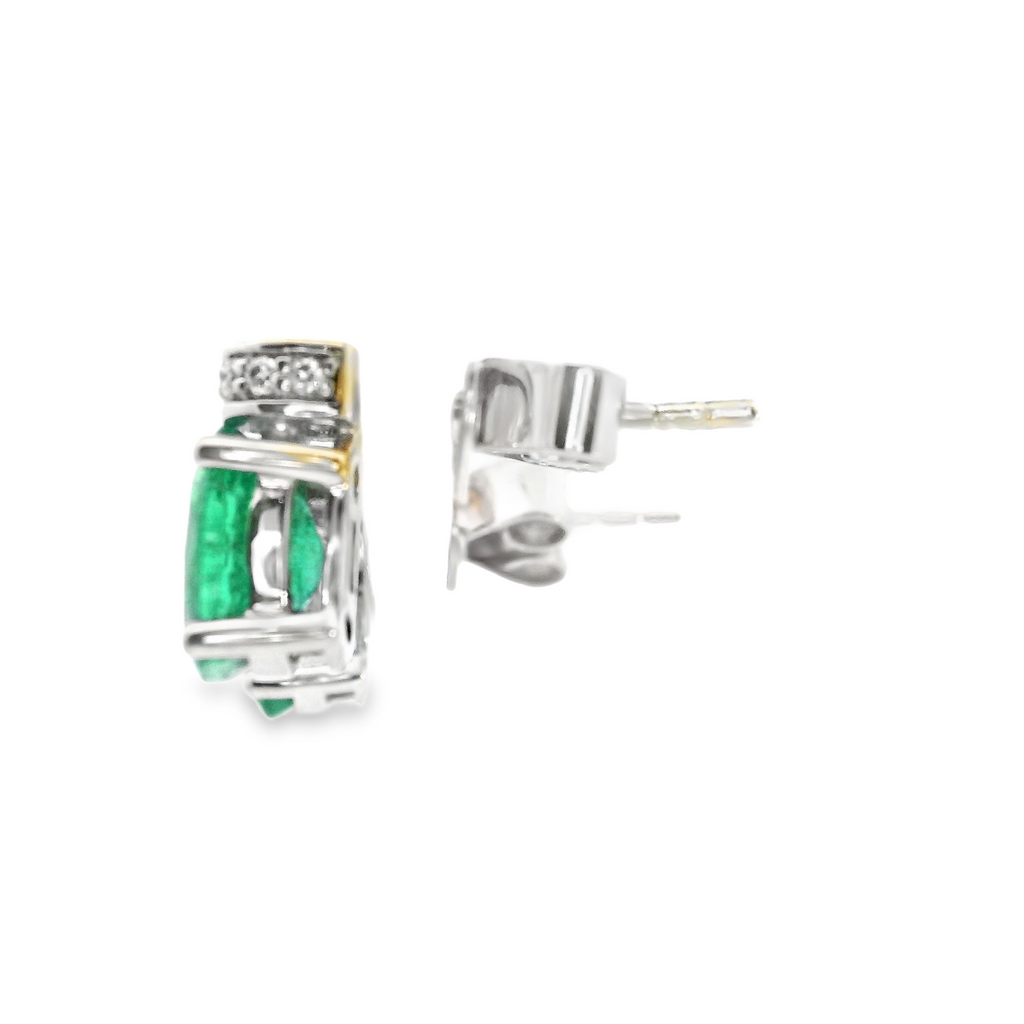 14K WG Emerald & Diamond Stud Earrings