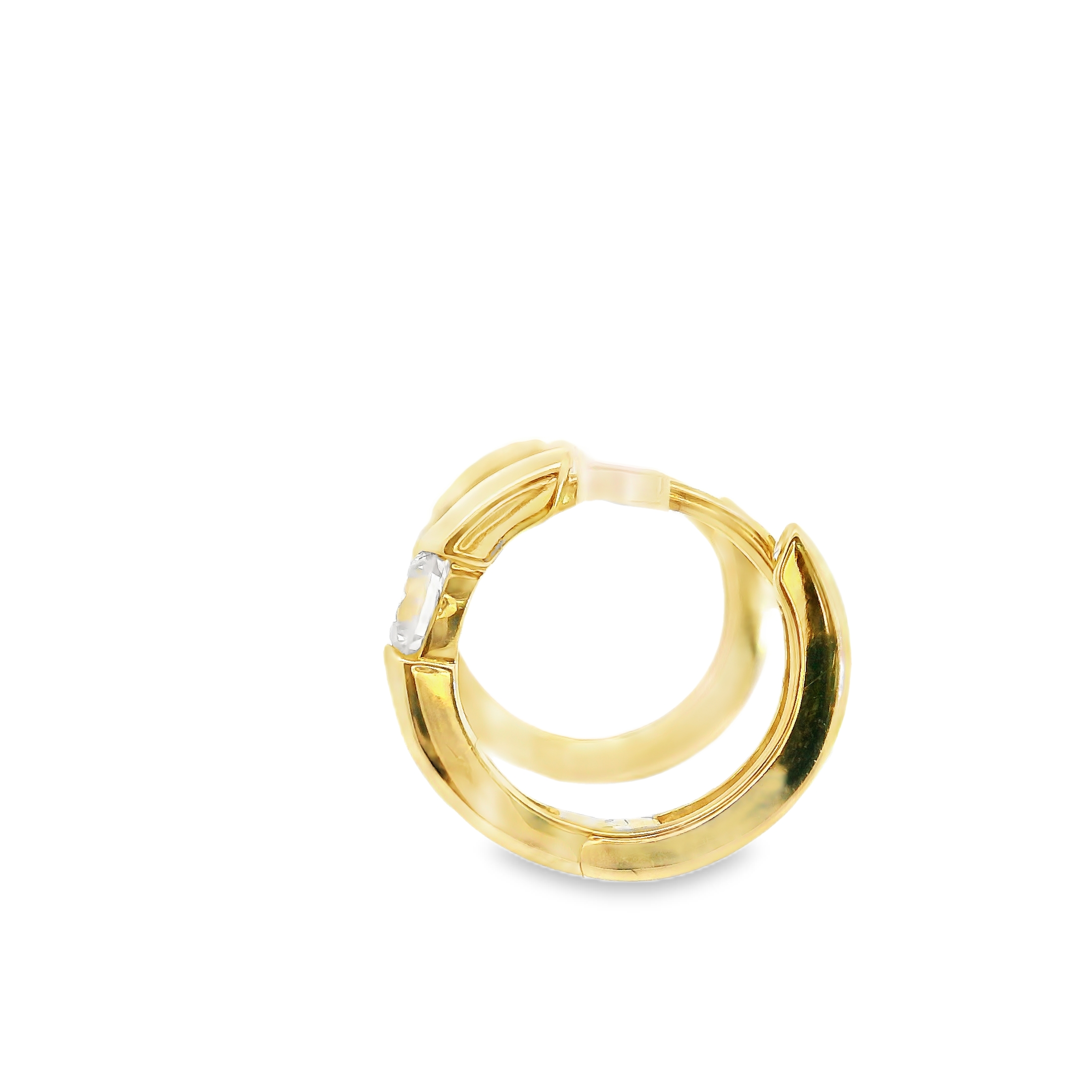 These huggie style hoops are 10k yellow gold with a round lab grown diamond flush set into each earrings. The diamonds total 0.33 ct tw,