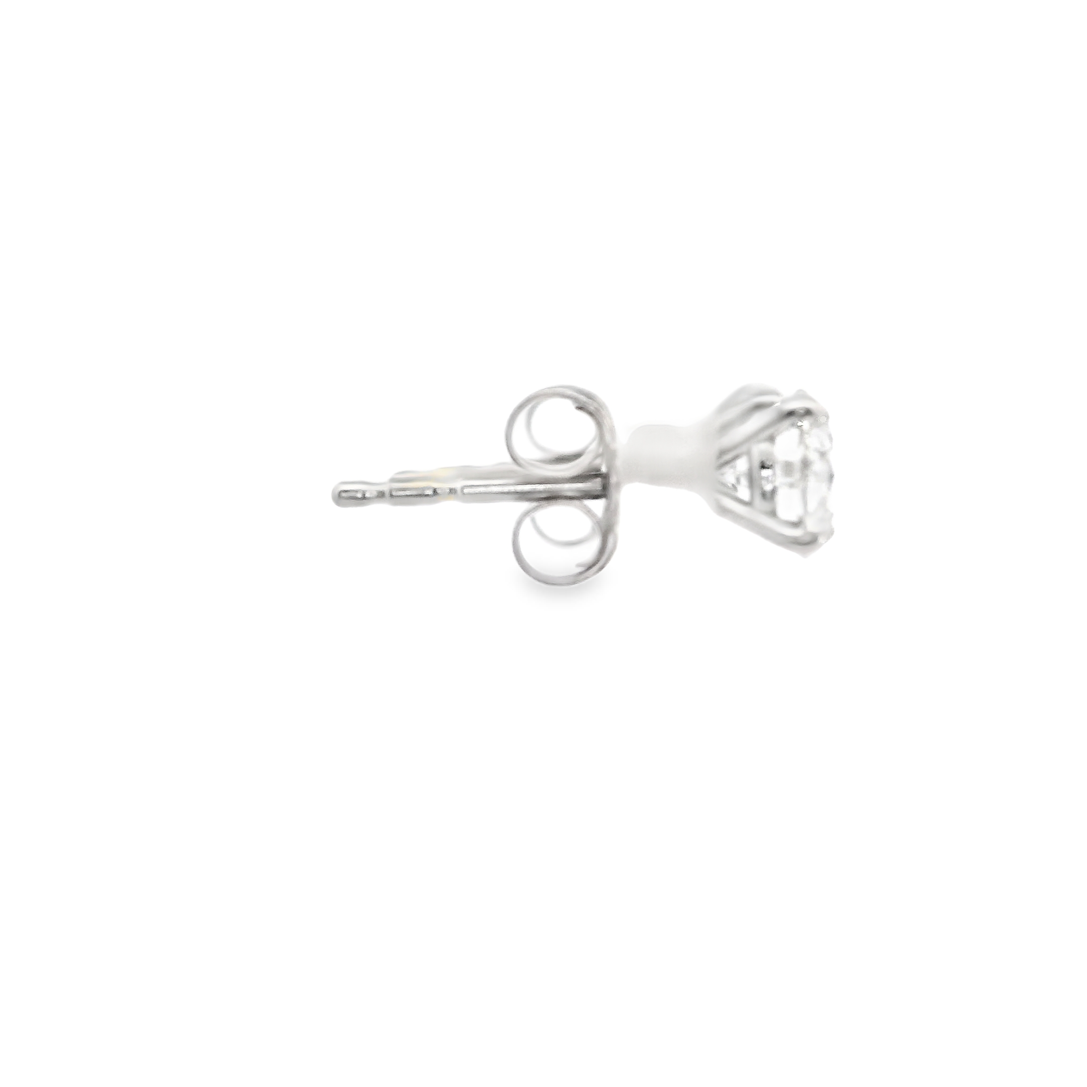 These diamonds studs are set in 14k white gold with martini style 4 prong setting and heavy friction backs. The diamonds are natural diamonds totaling 0.70 ct tw and are G/H in color and VS2/SI1 clarity.