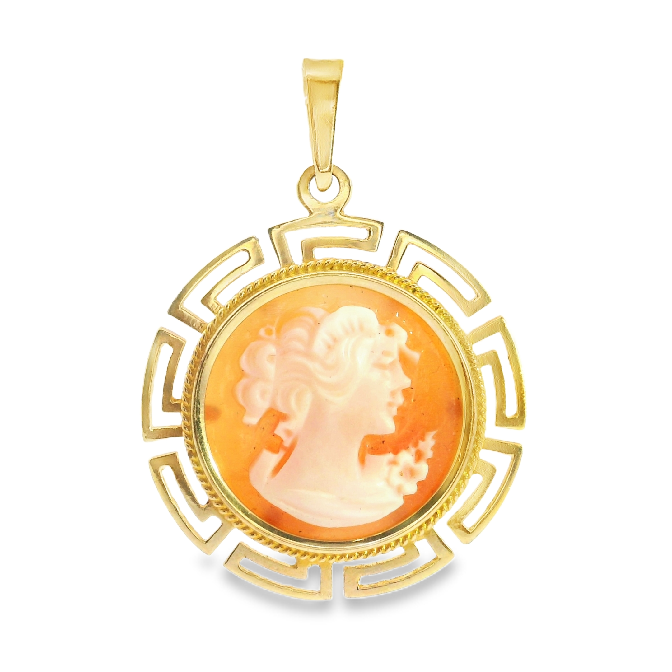 14K YG Greek Key Cameo Pendant