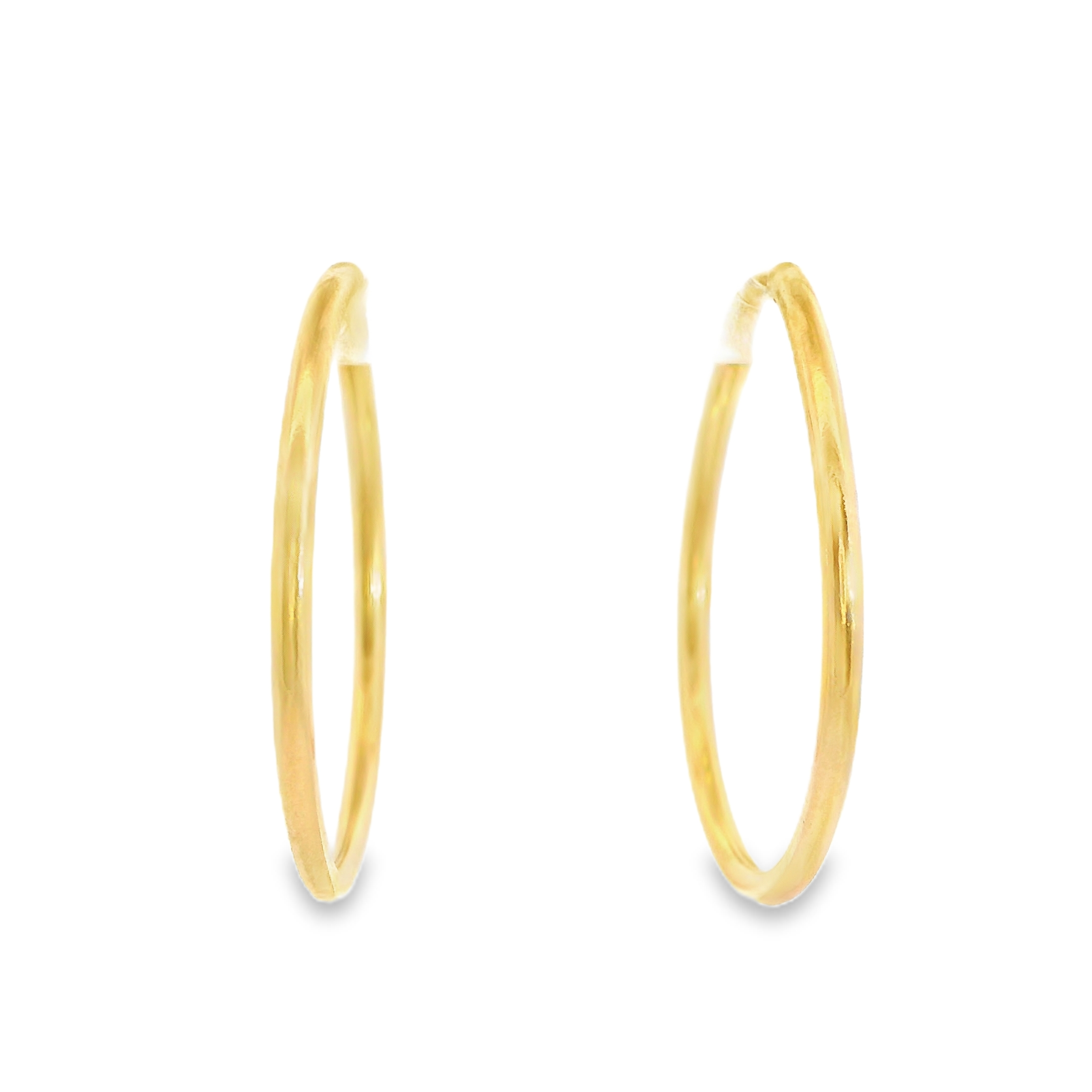These estate 14k yg simple hoop earrings are approx 1" in diameter and 1.5mm wide.