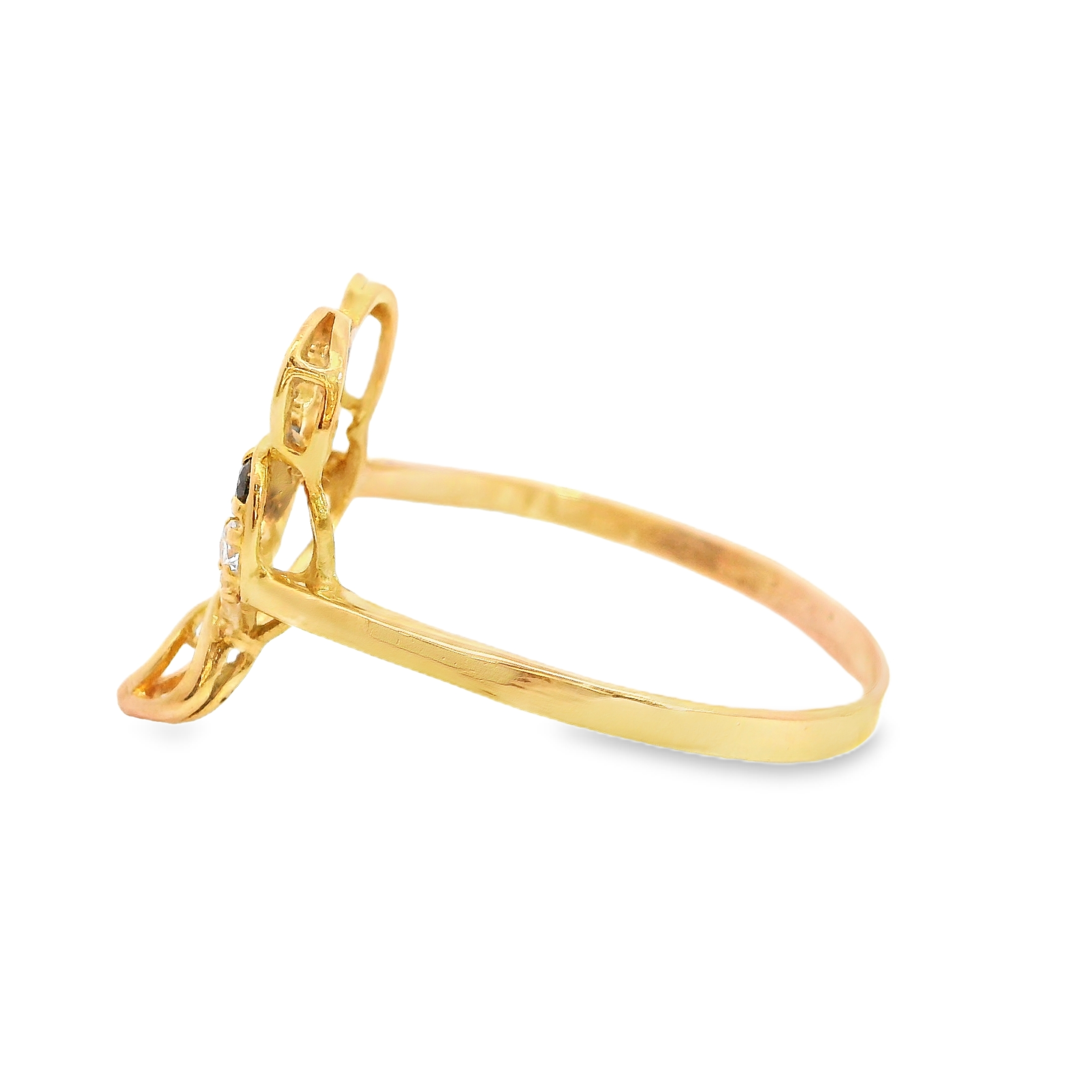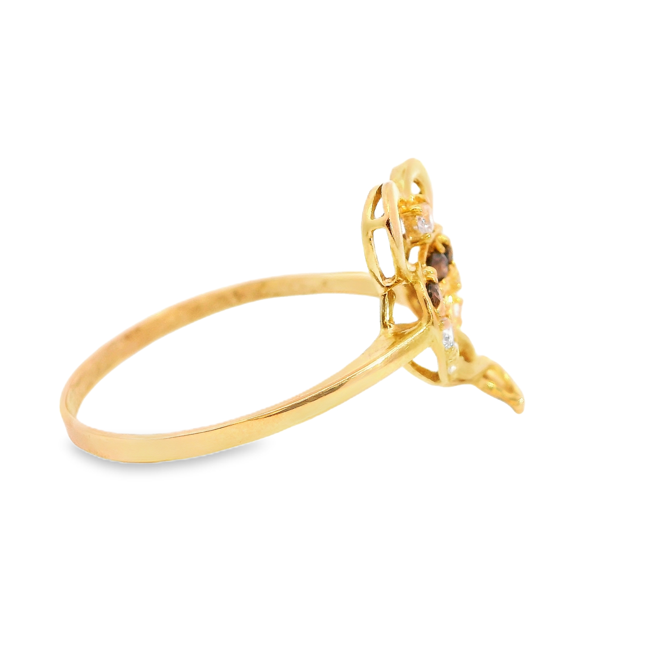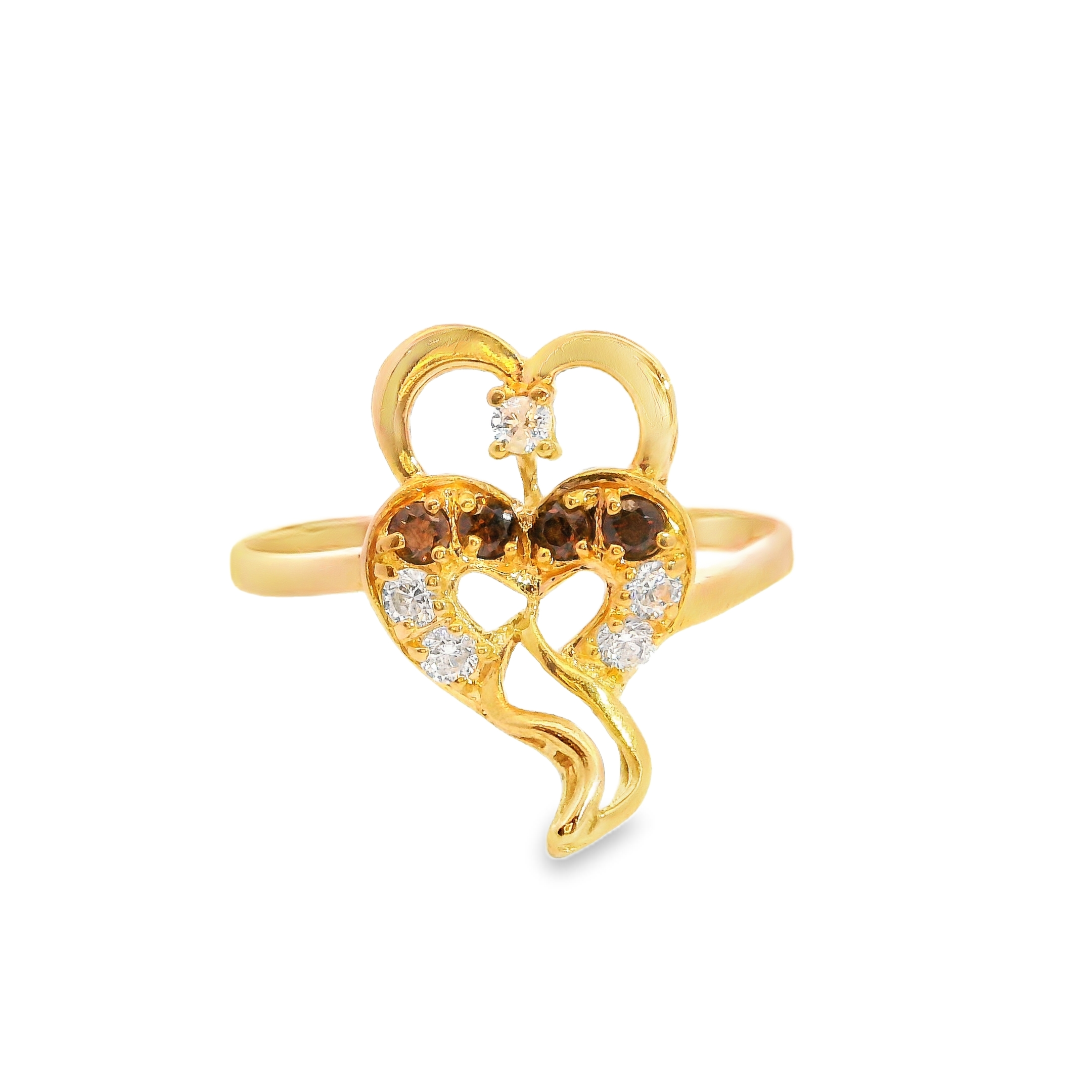 22K YG White and Brown CZ Heart Ring