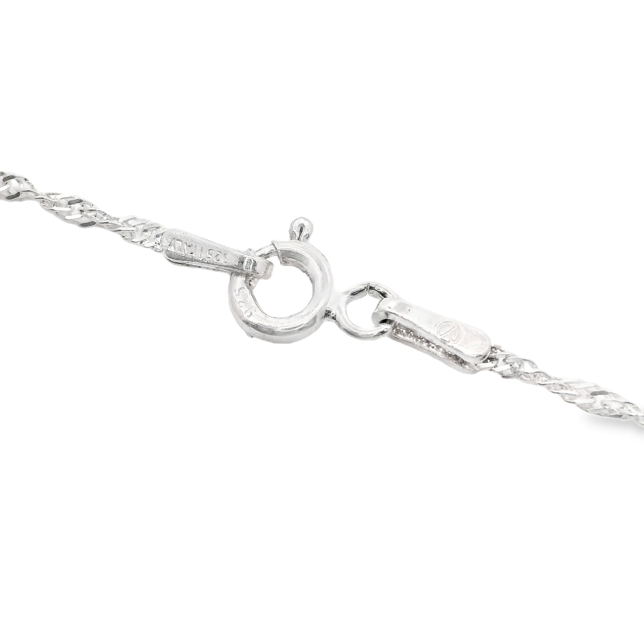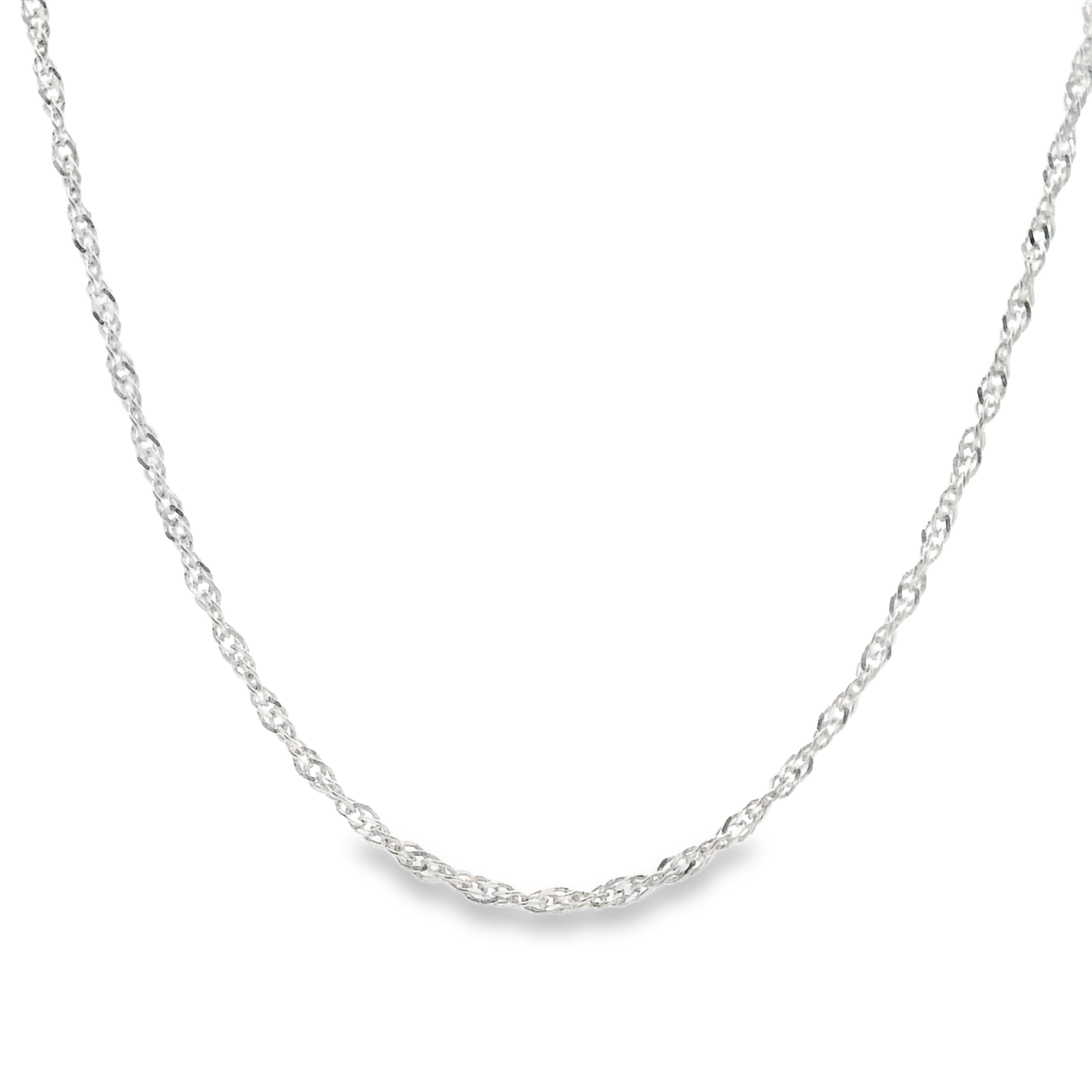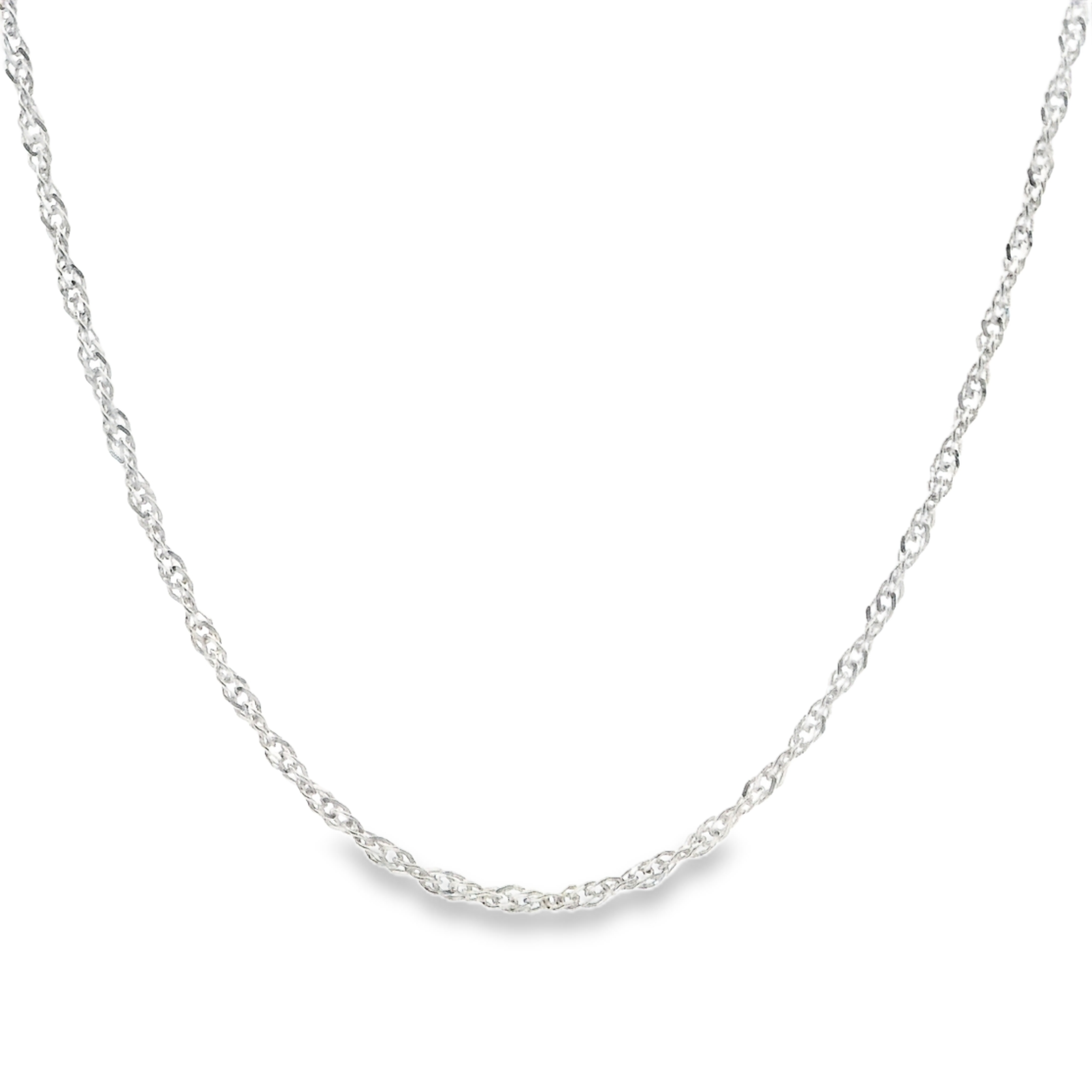 A sterling silver loose rope style chain that is 1.1mm wide and 20" long with a spring ring style clasp.