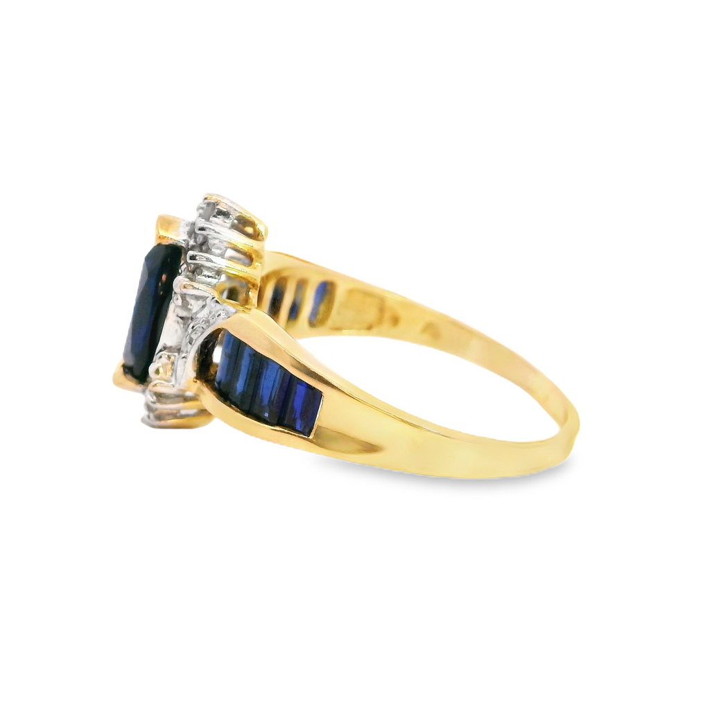 10K YG Synthetic Sapphire & Diamond Ring