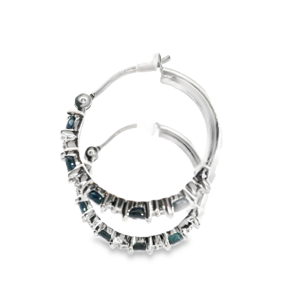 10K WG Sapphire & Diamond Hoop Earrings