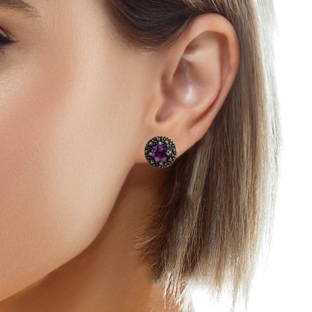 Sterling Silver Mickael Dawknis Amethyst Stud Earrings