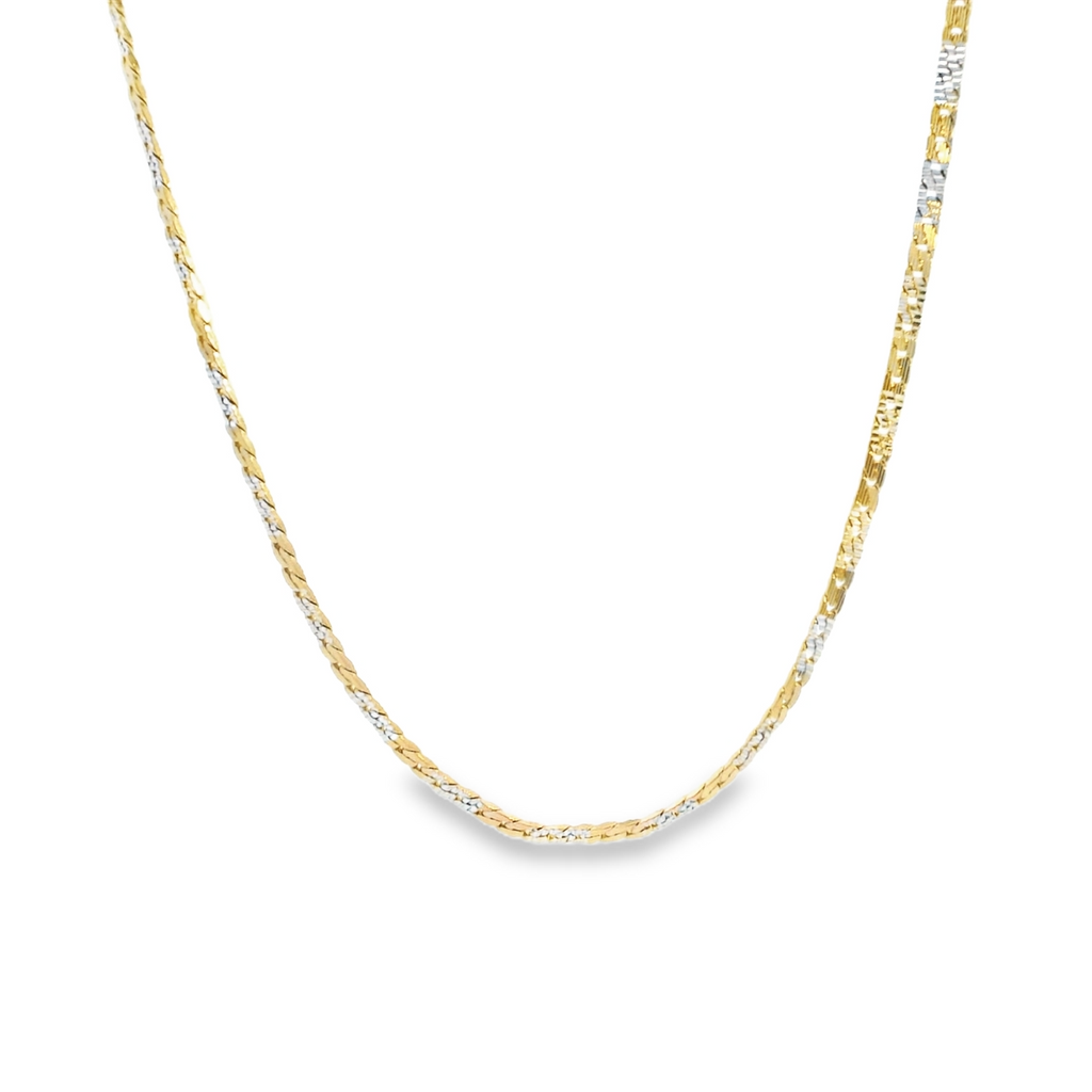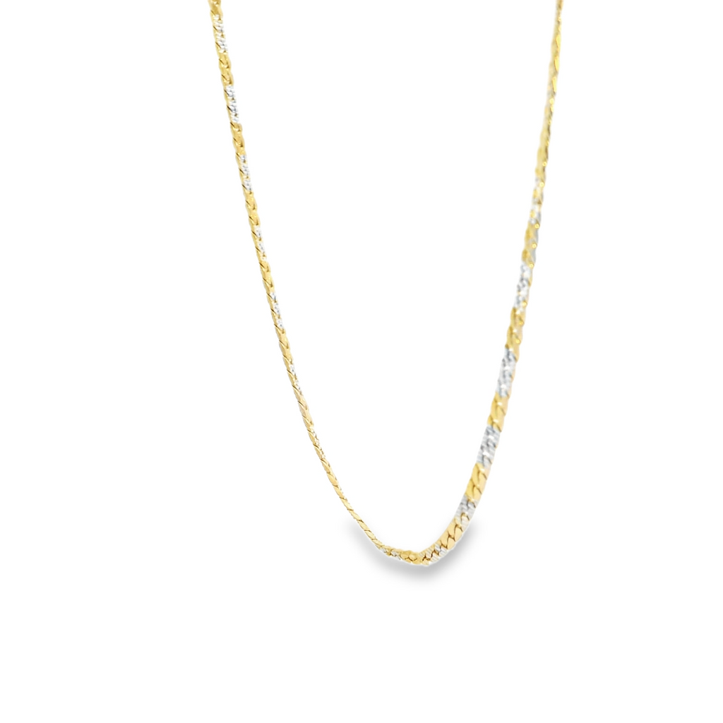 14K Two Tone Flat Diamond Cut Curb Chain 22.5"