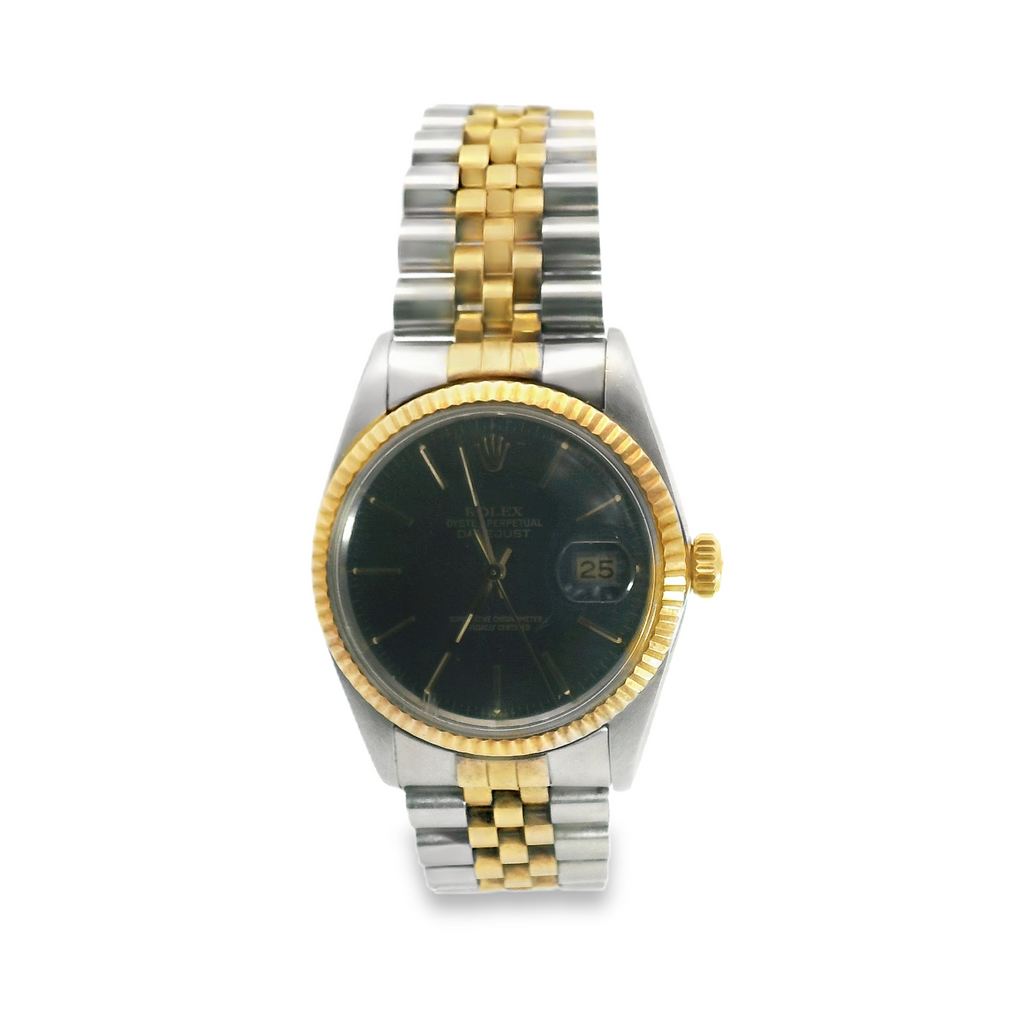 Rolex Mens Datejust 18K Yellow Gold Steel 2 Tone Blue Dial 16013 Watch