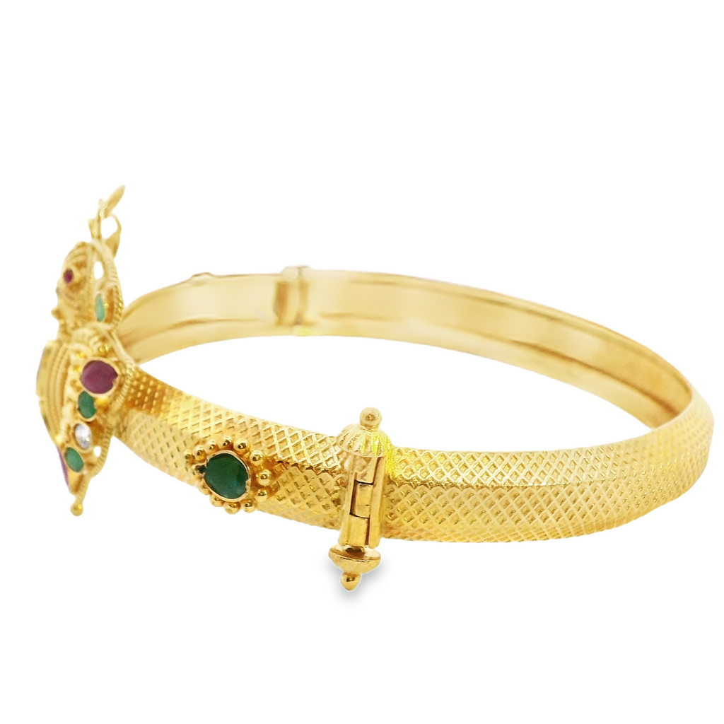 22K Ruby Emerald & Diamond Butterfly Bangle Bracelet