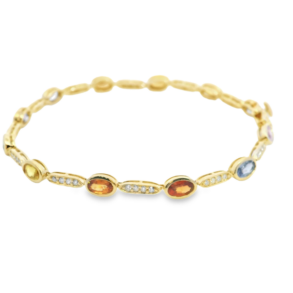 14K YG Rainbow Sapphire & Diamond Tennis Bracelet