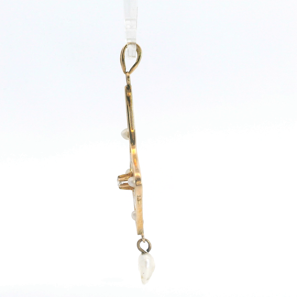 10K YG Pearl, Diamond & Enamel Vintage Pendant