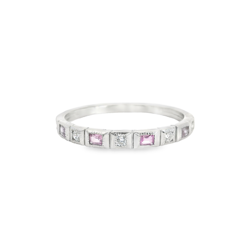 10K WG PINK TOURMALINE & DIAMOND BAND
