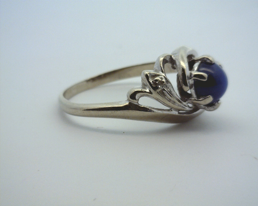 10K WG Synthetic Star Sapphire & Diamond Ring