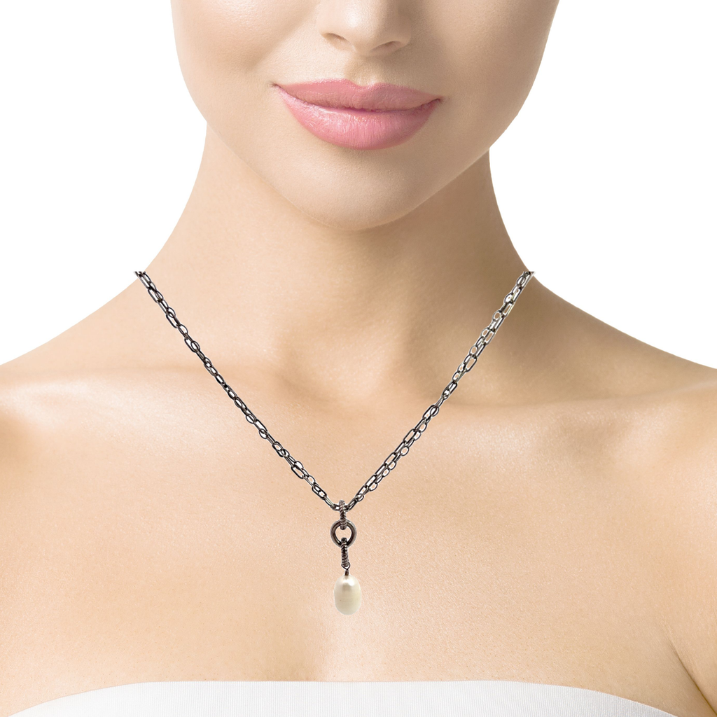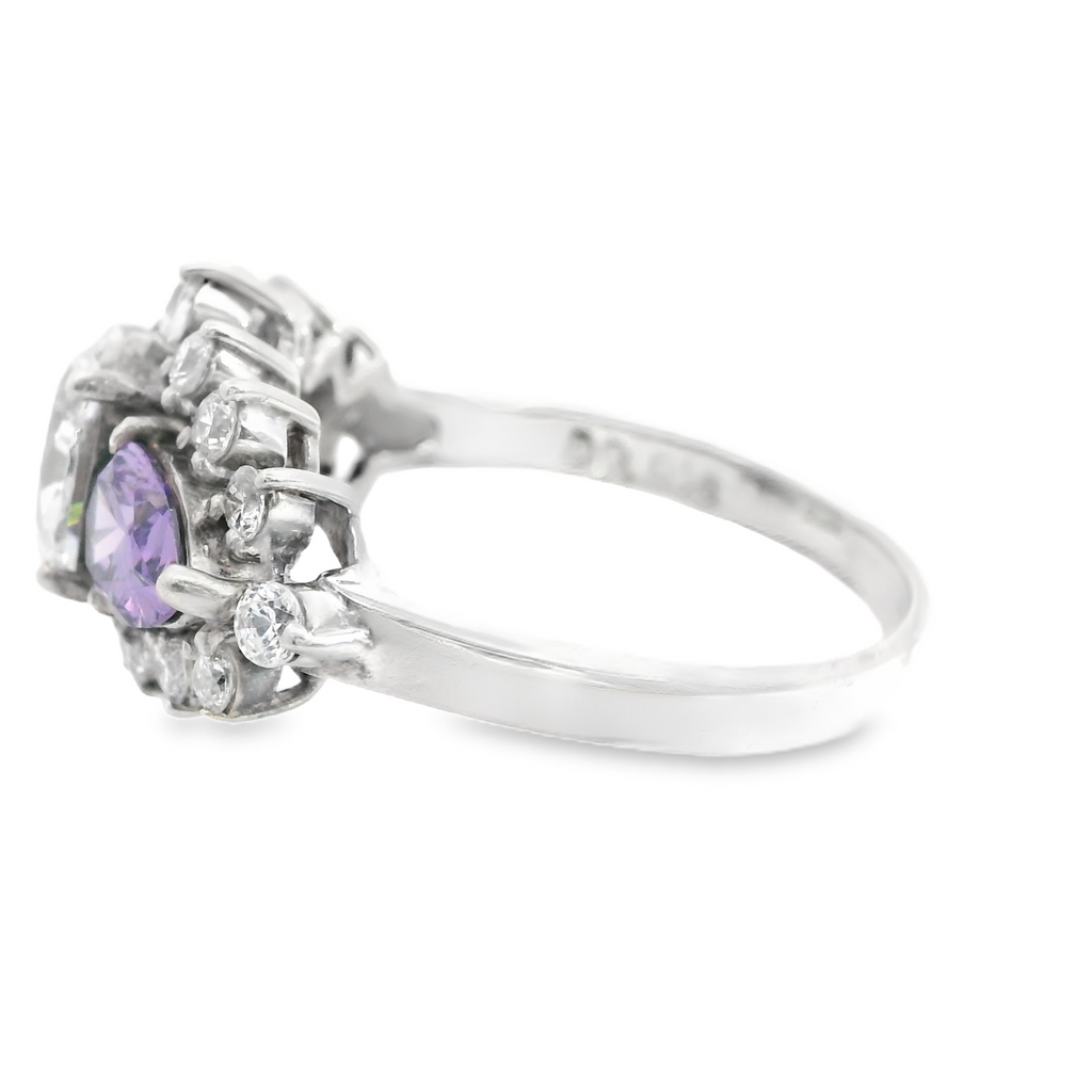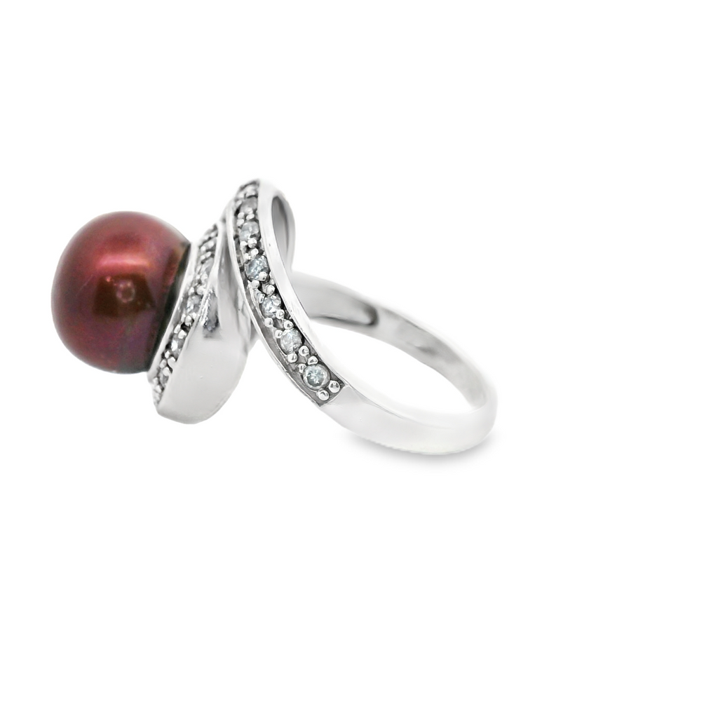 Sterling Silver Dyed Pearl Ring with CZ's Size 5
