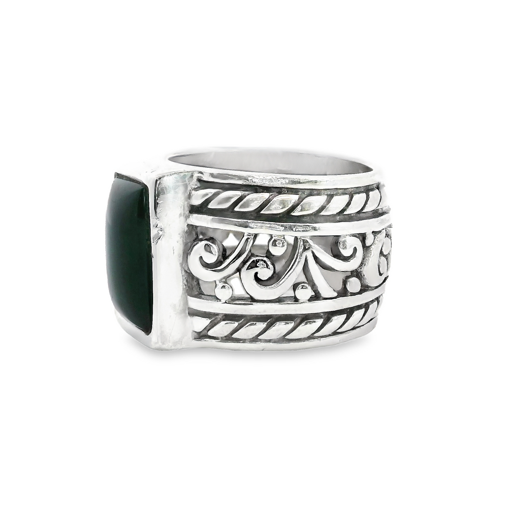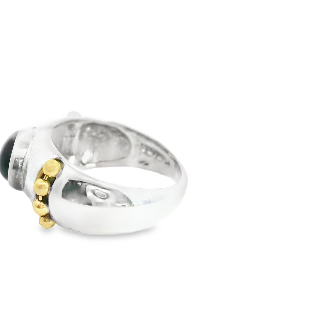 Sterling Silver & 18K YG Black Onyx Ring Size 4.5