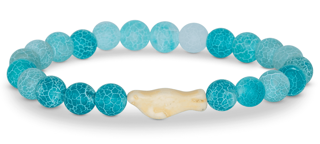 This stretch Fahlo bracelet in aqua blue with seal center detail comes with it's own real live seal to track!