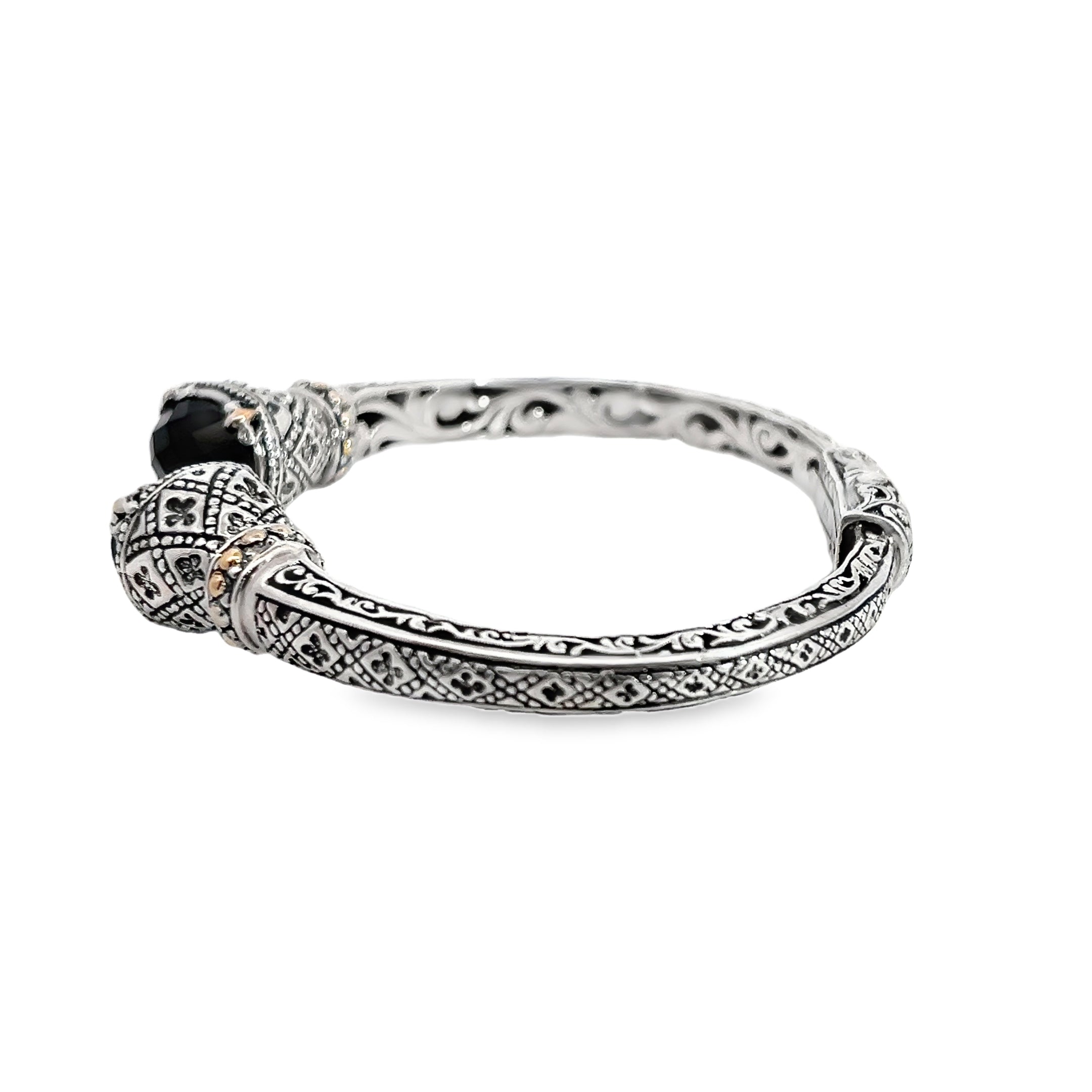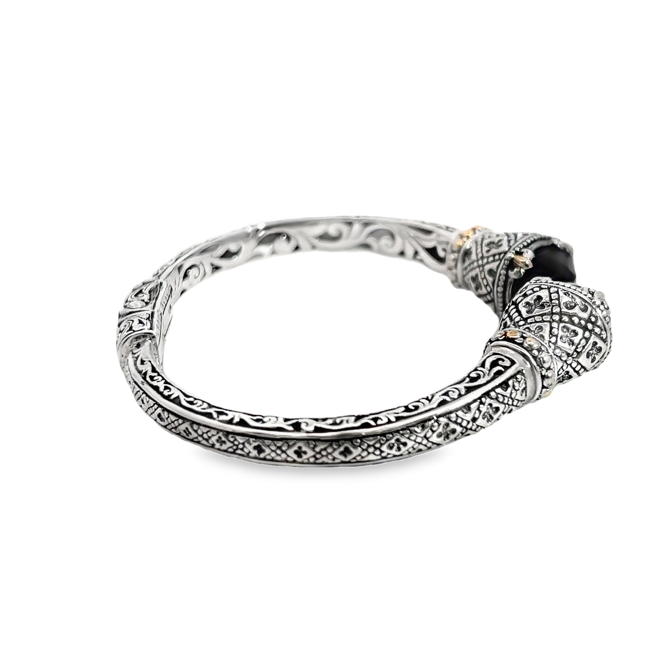 Sterling Silver & 18K YG Onyx Hinged Bracelet