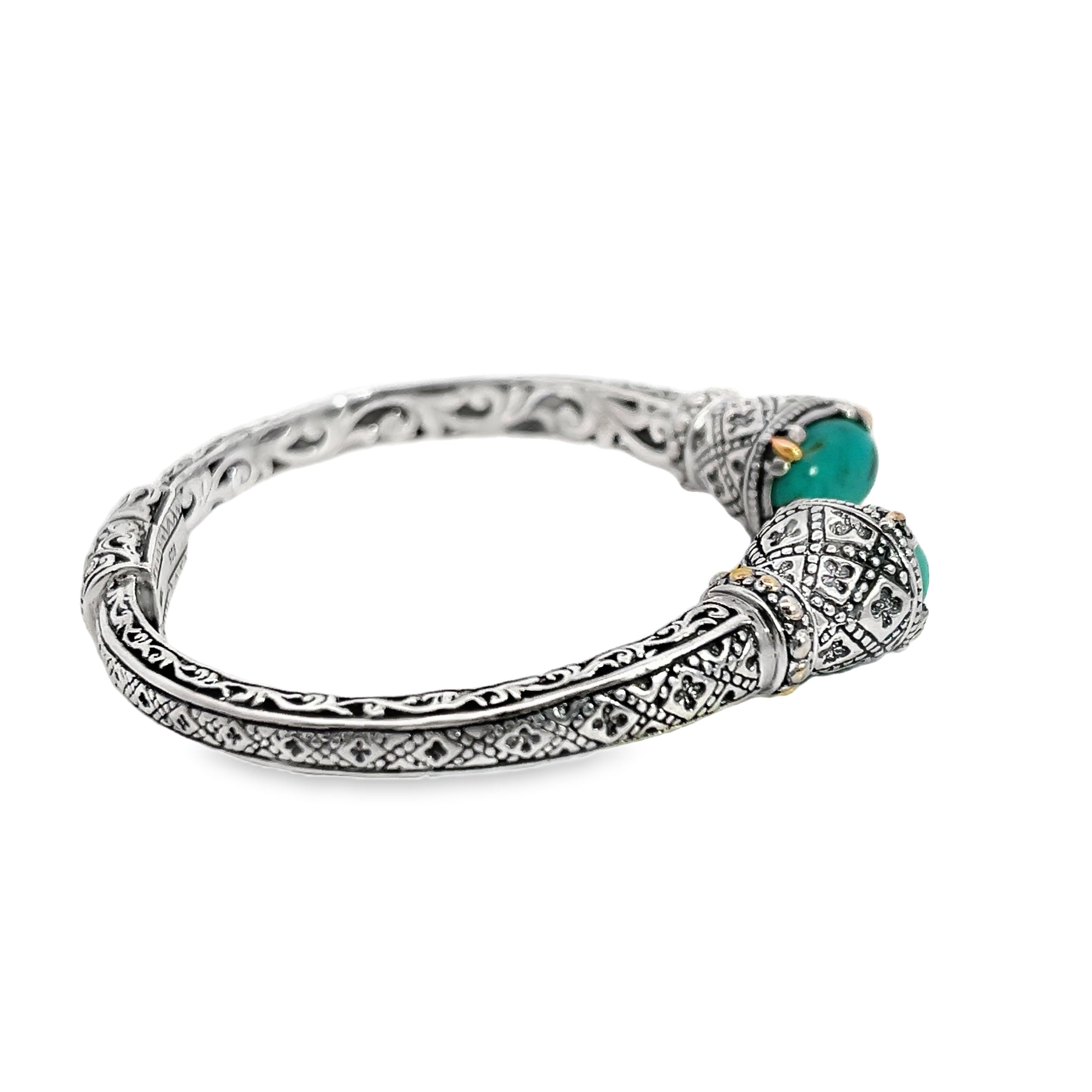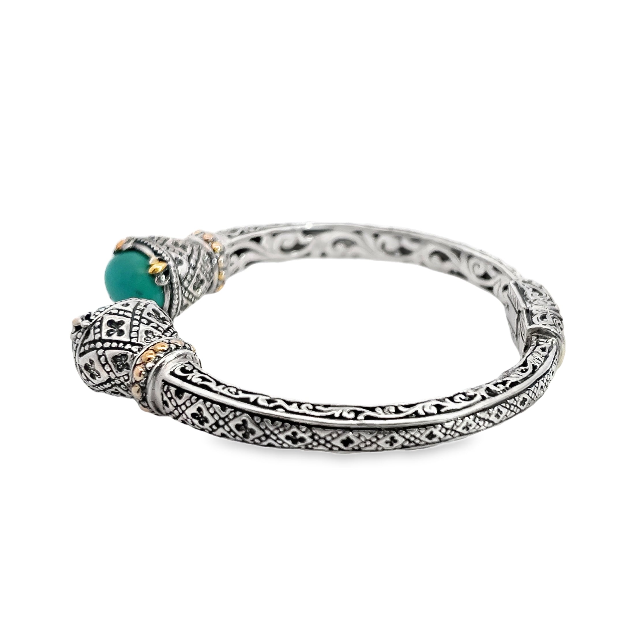 Sterling Silver & 18K YG Turquoise Hinged Bracelet