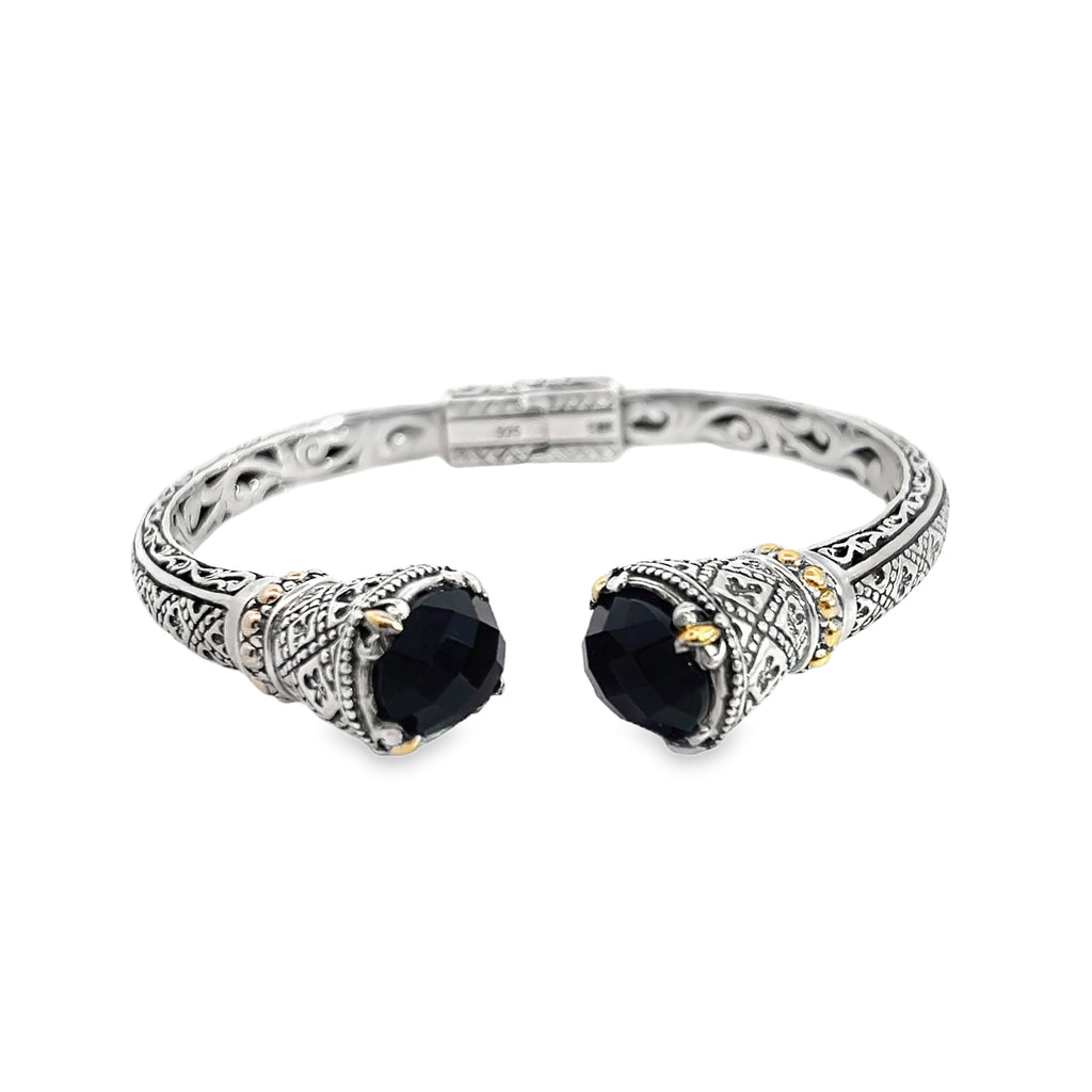 Sterling Silver & 18K YG Onyx Hinged Bracelet