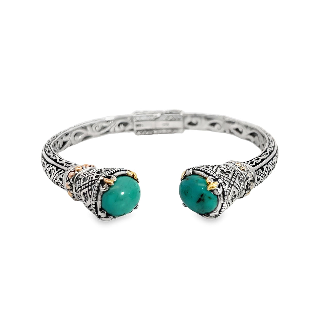 Sterling Silver & 18K YG Turquoise Hinged Bracelet