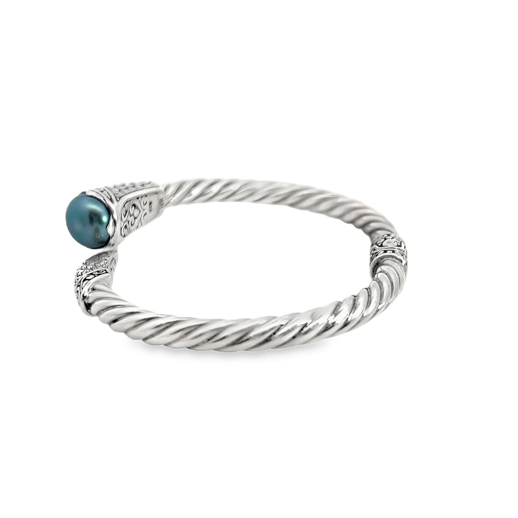 Sterling Silver & 18K Pearl Bangle Bracelet