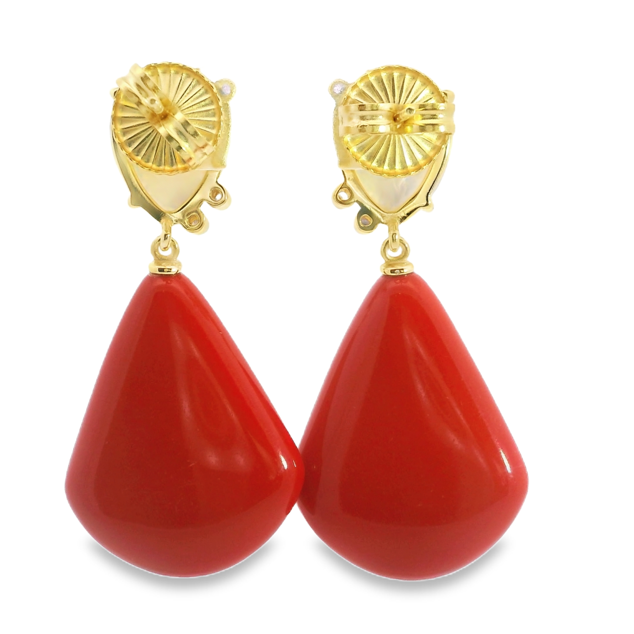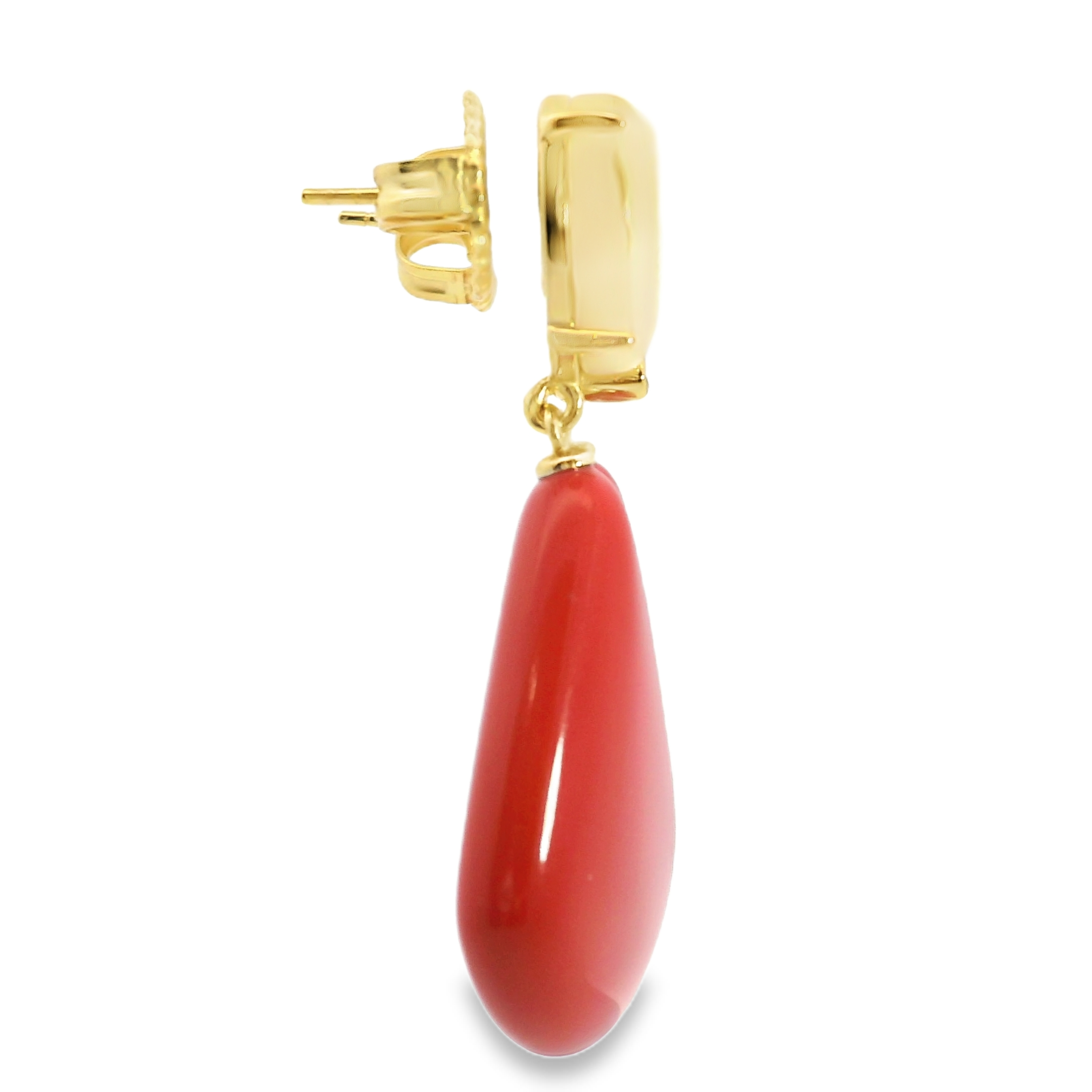 Gold Plated Sterling Silver Drop Earrings with Mother of Pearl & Coral