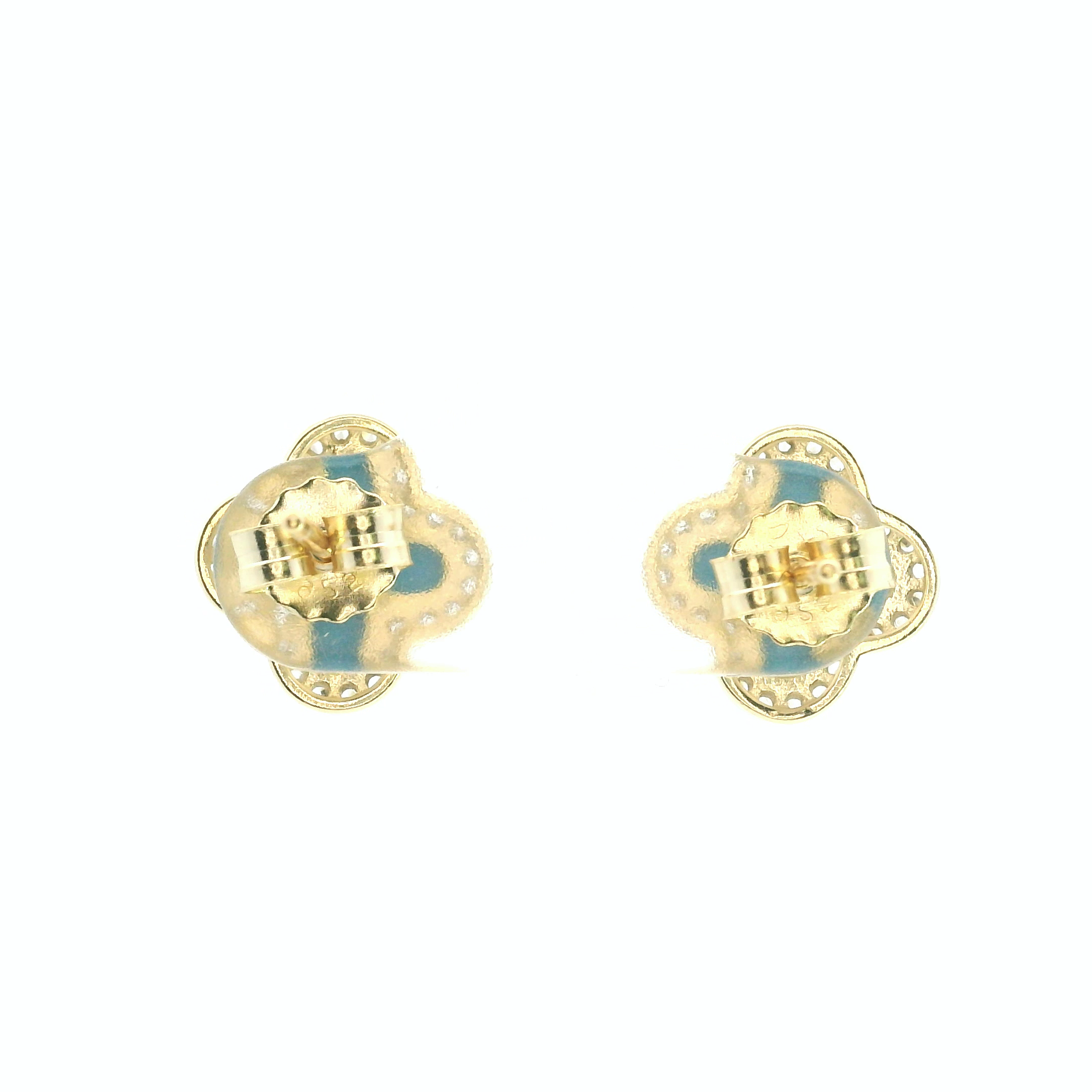 Gold Plated Sterling Silver Turquoise & CZ Clover Earrings