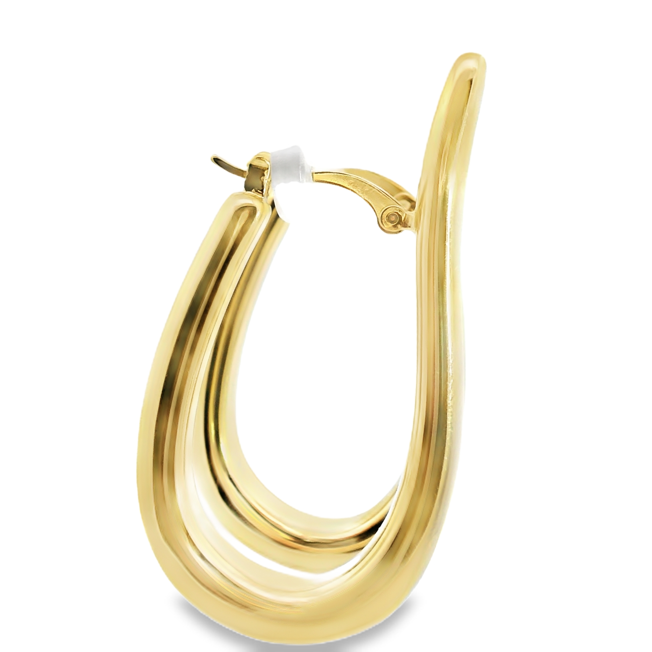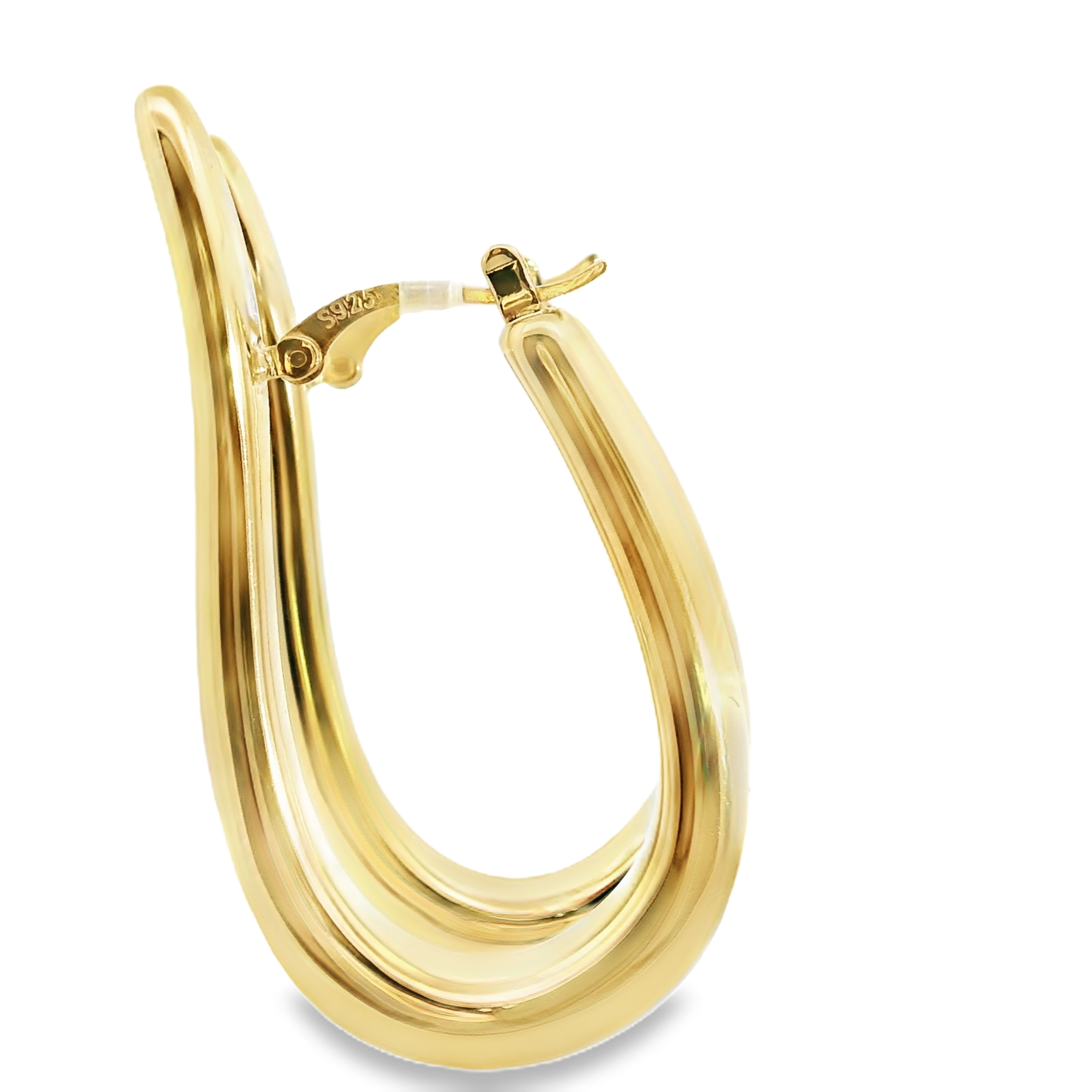 Gold Plated Sterling Silver Wide Oval Hoop Earrings 1.25" Long
