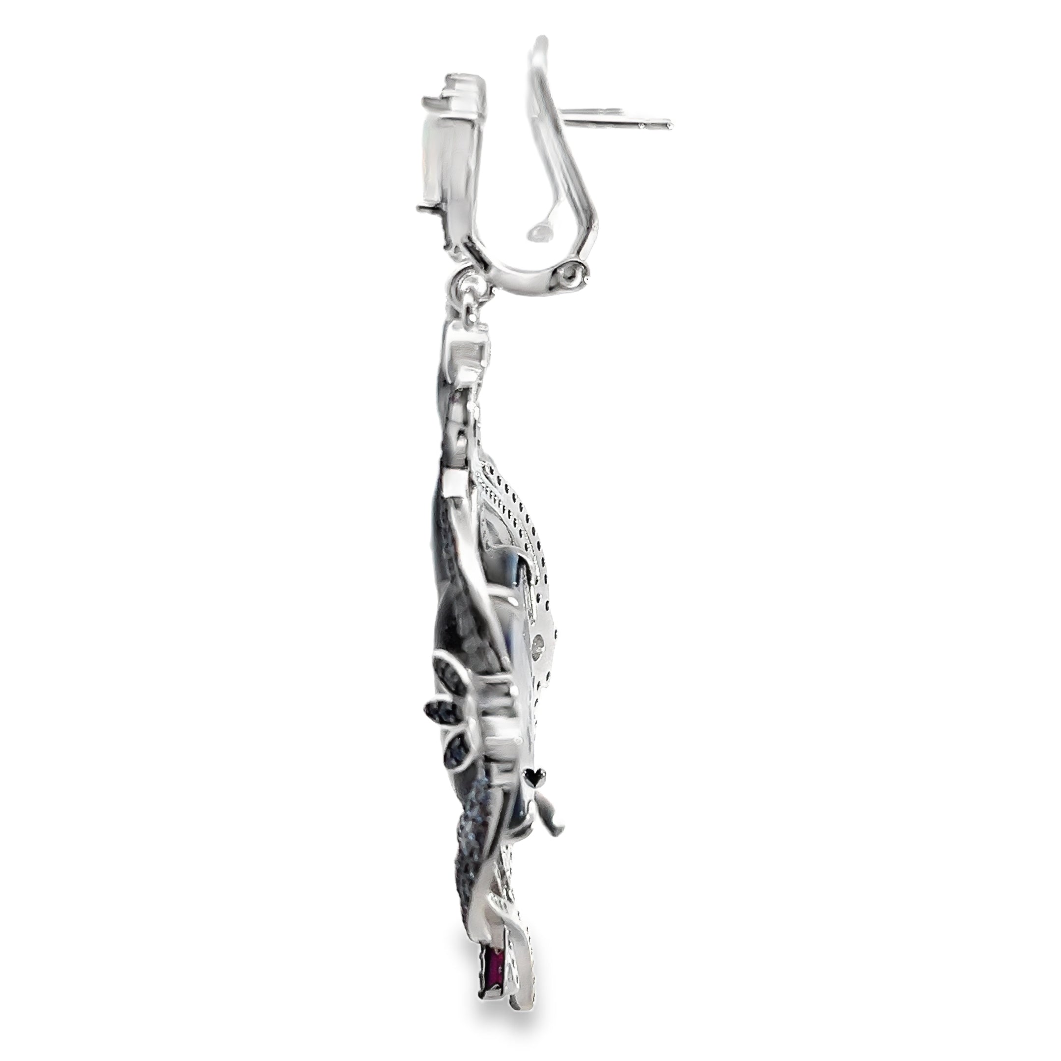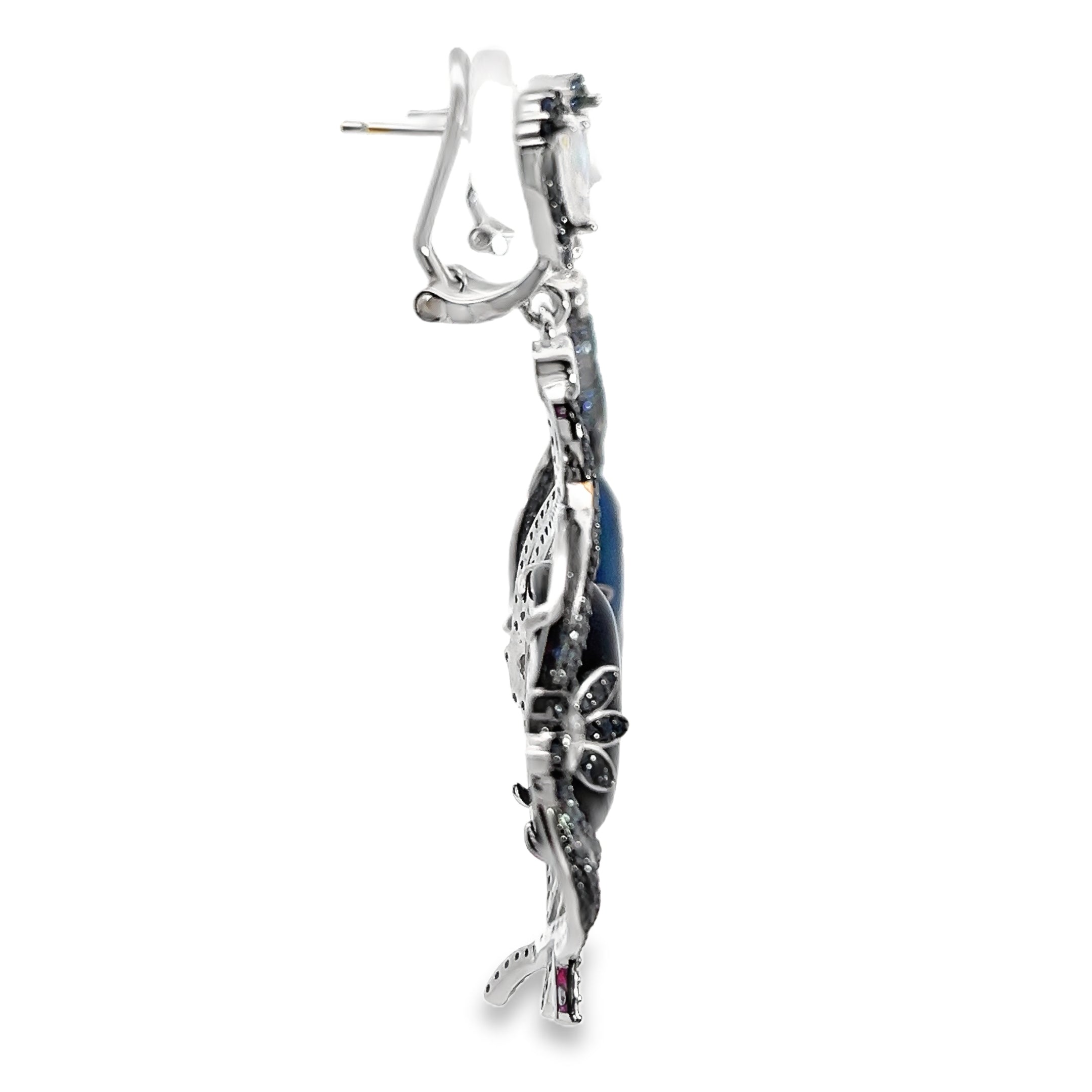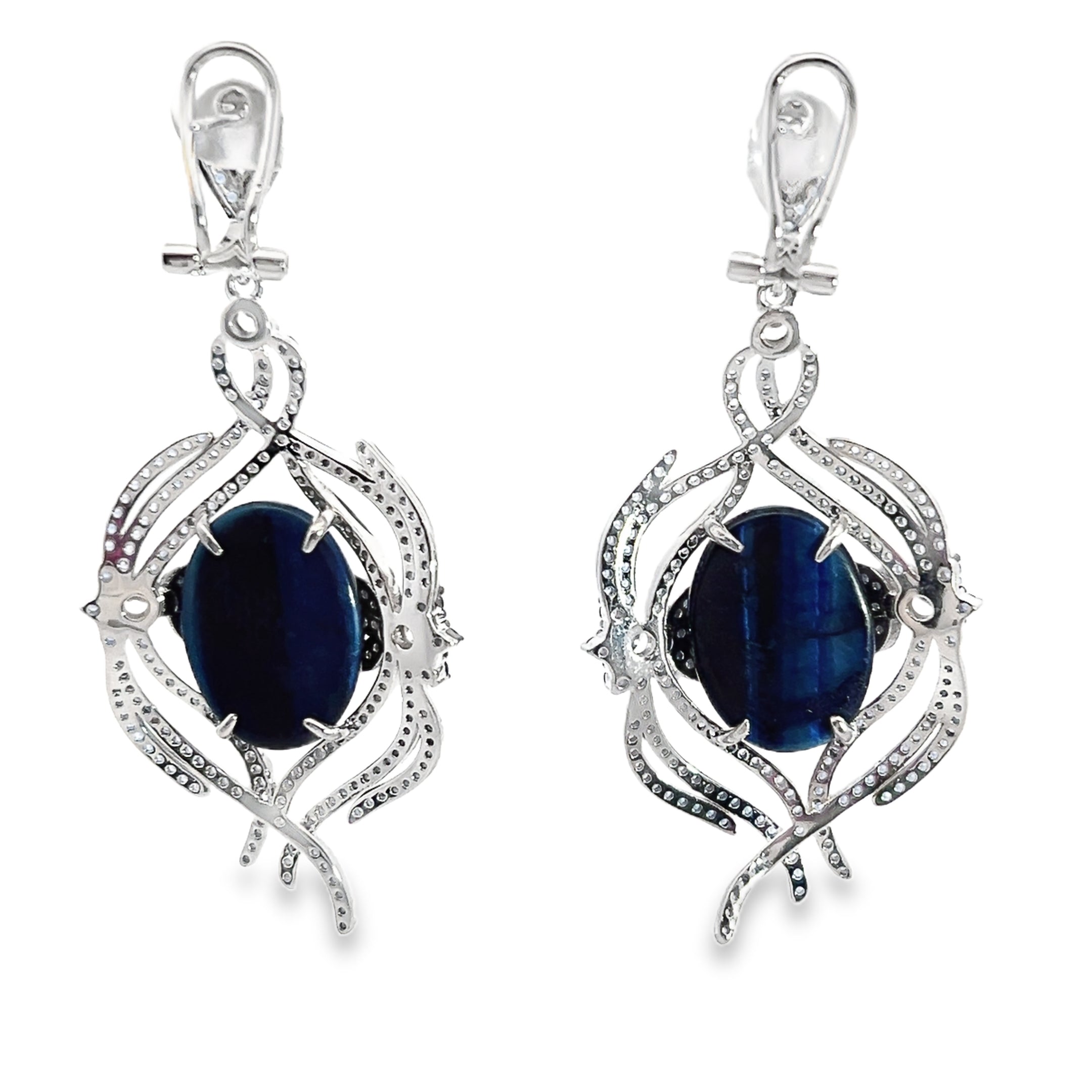Sterling Silver Blue Tigers Eye & CZ Dangle Earrings 2.25" Long