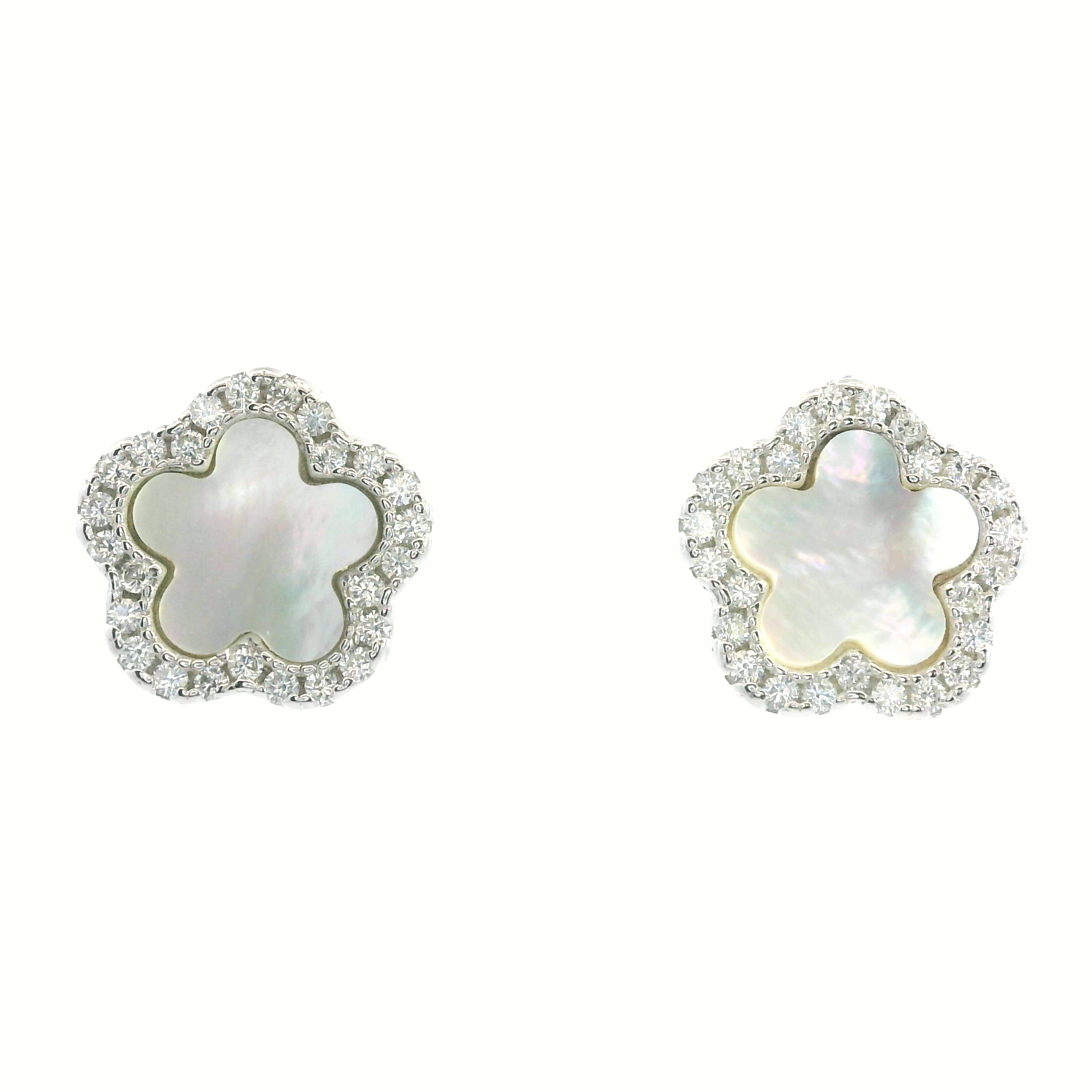 Sterling Silver Mother of Pearl & CZ Flower Earrings