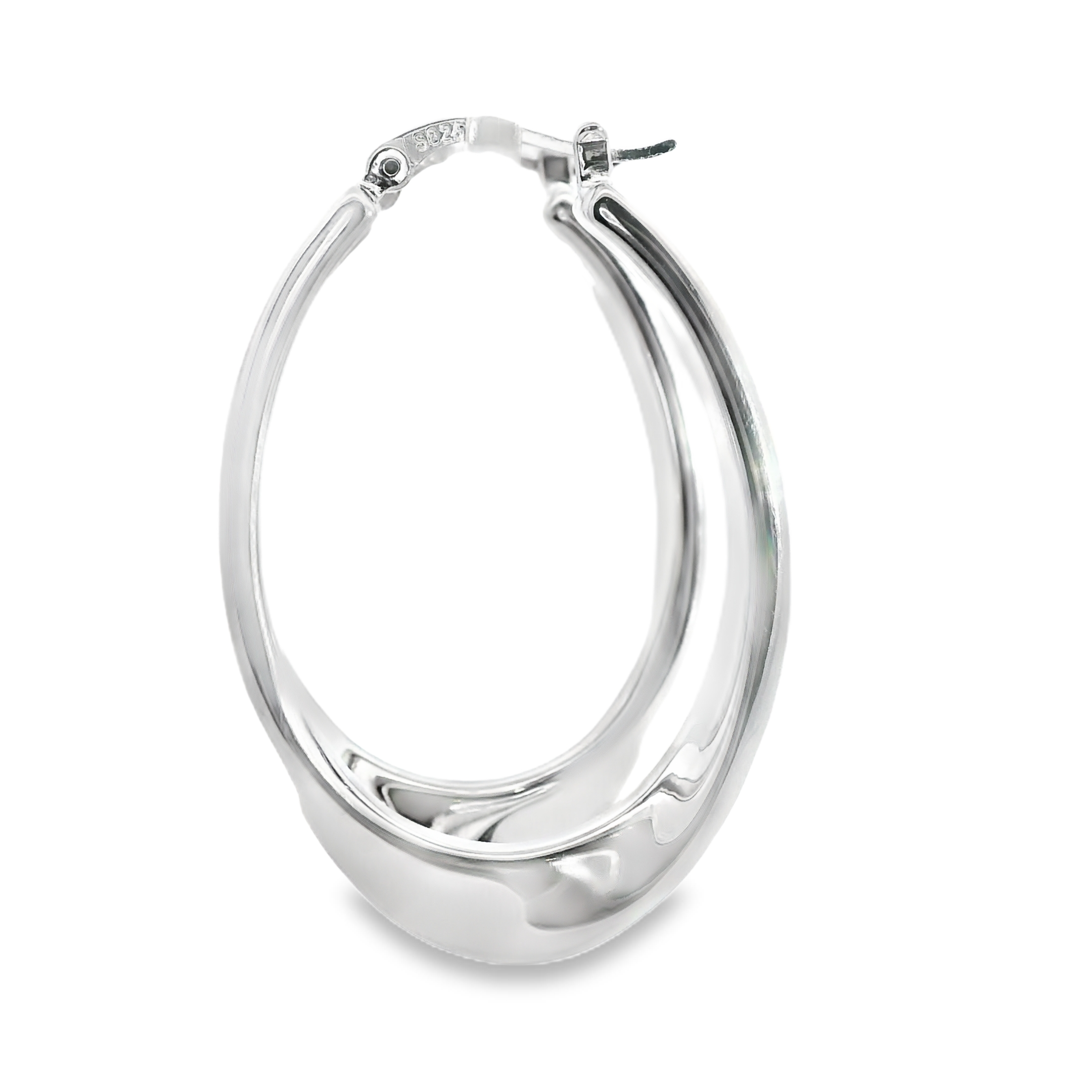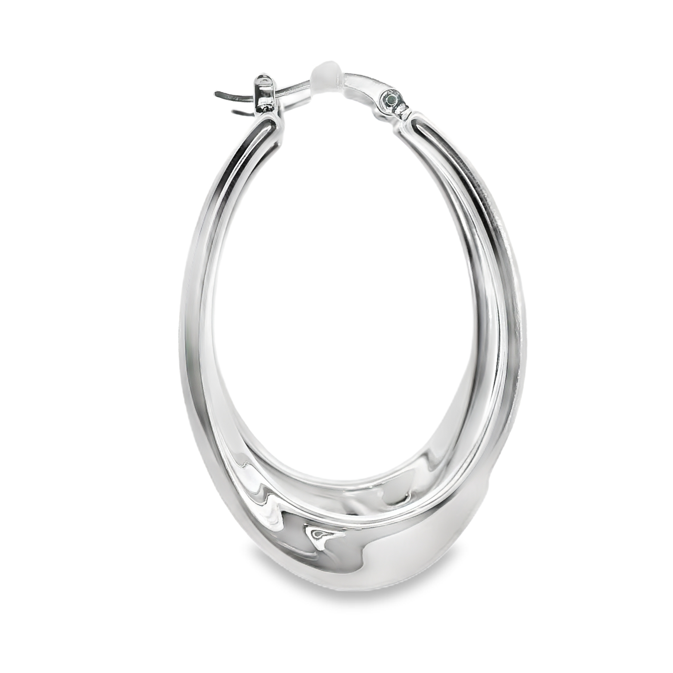 Sterling Silver Wavy Wide Twist Oval Hoop Earrings