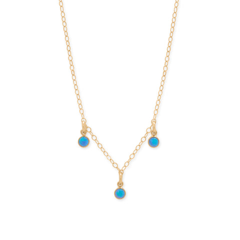 15" + 2.25" 14/20 Gold Filled Blue Opal Charm Necklace
