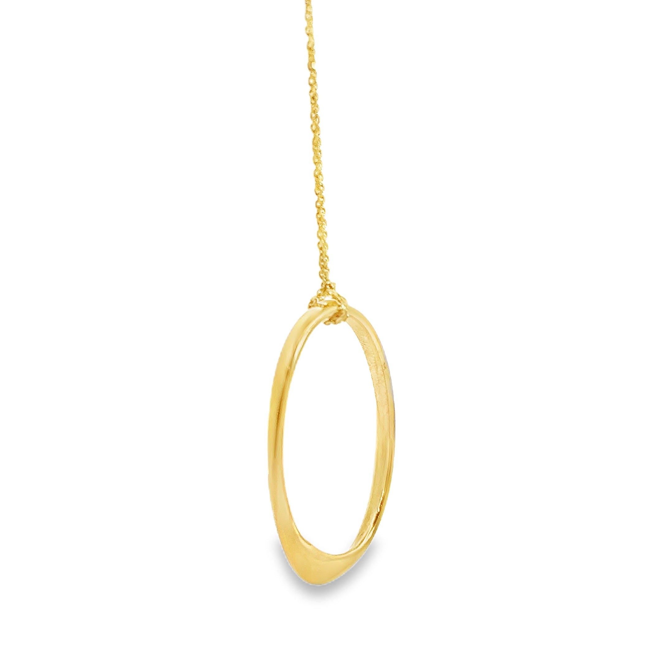 This necklace is sterling silver with gold plating: The pendant is a large oval, approx 2" long, set on a 30" cable chain.