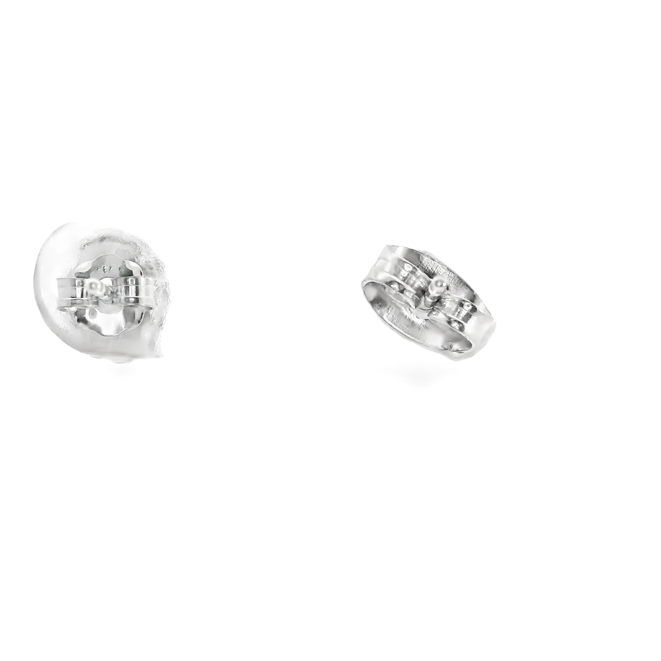 These earrings are 10k white gold with an oval cut blue sapphire prong set in the center of a diamond halo going around the stone. The diamonds are a mix of round and baguette cut stones. They total 0.05 ct tw and the sapphires total 0.70 ct tw.