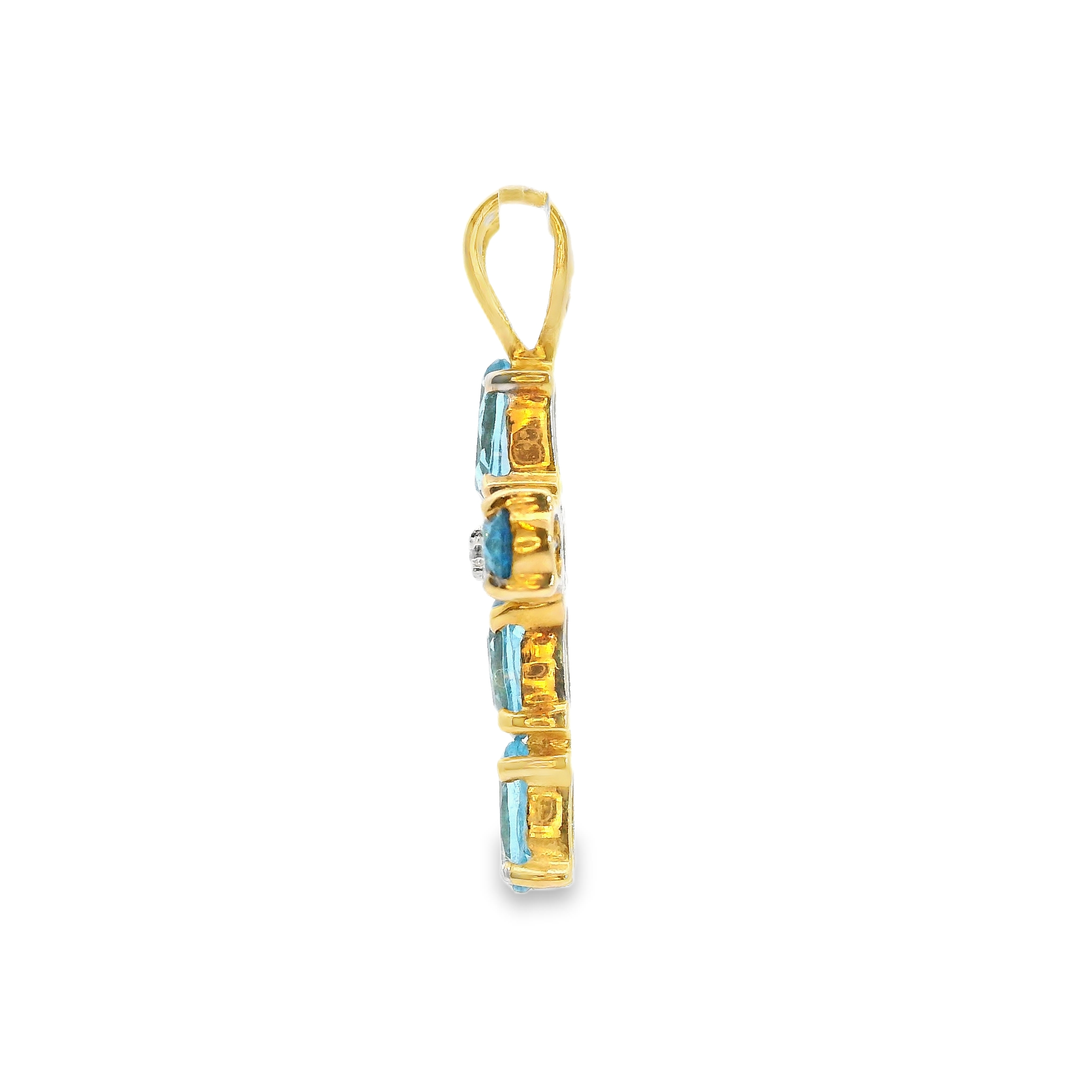 10K YG Blue Topaz Diamond Cross Pendant