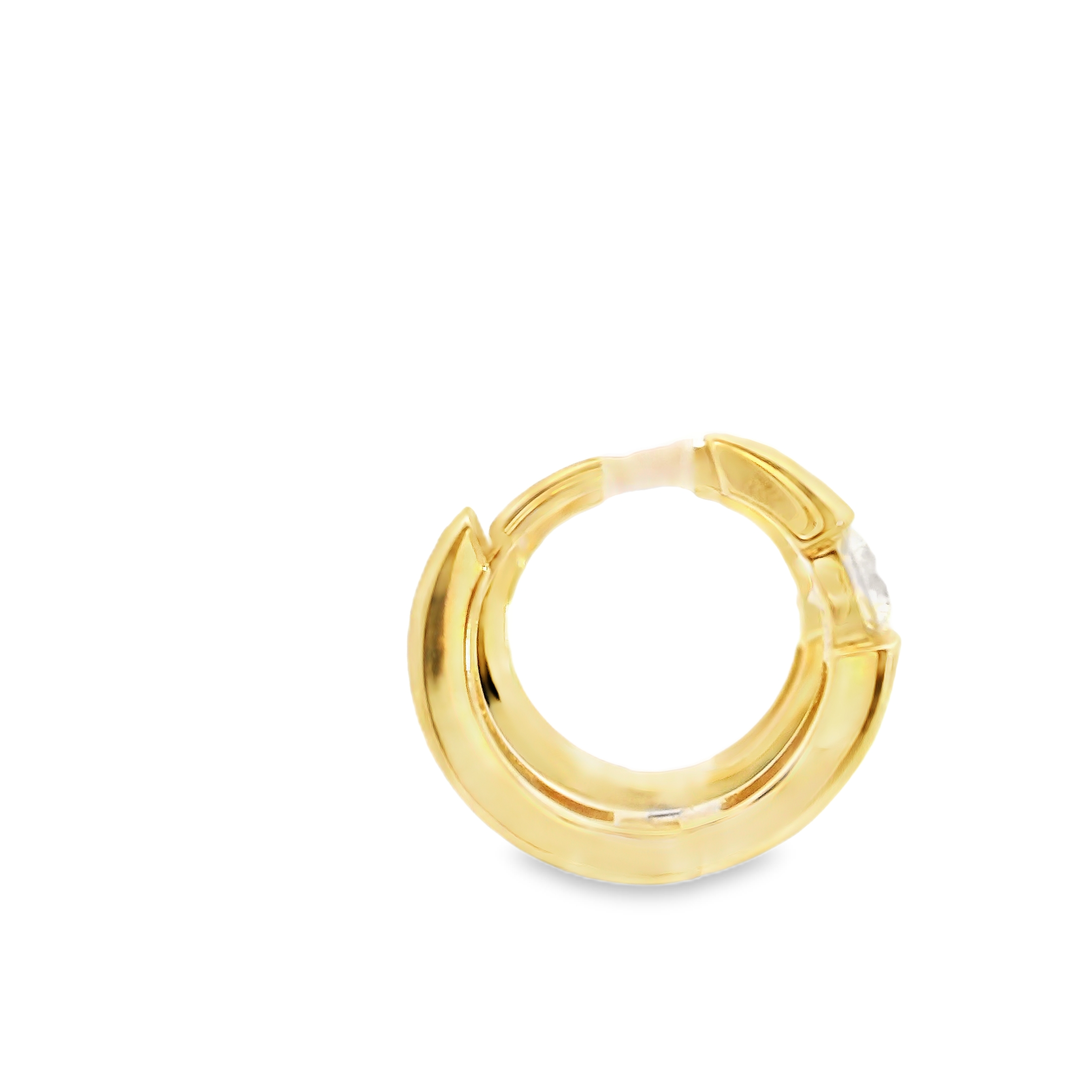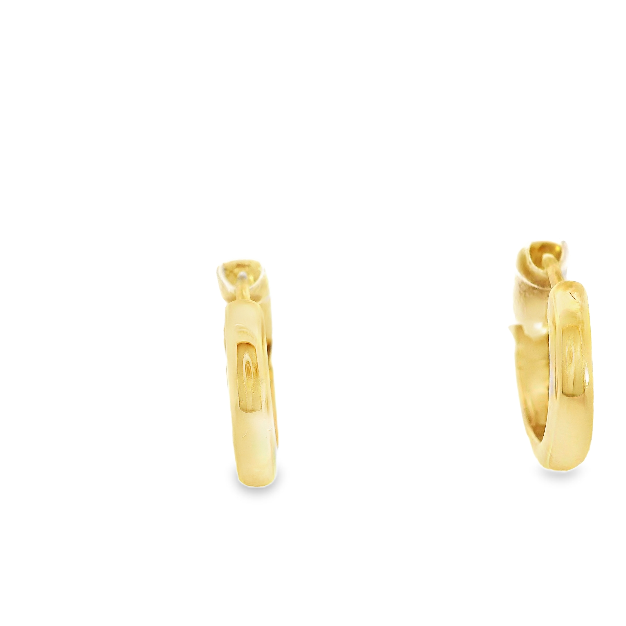 These huggie style hoops are 10k yellow gold with a round lab grown diamond flush set into each earrings. The diamonds total 0.33 ct tw,