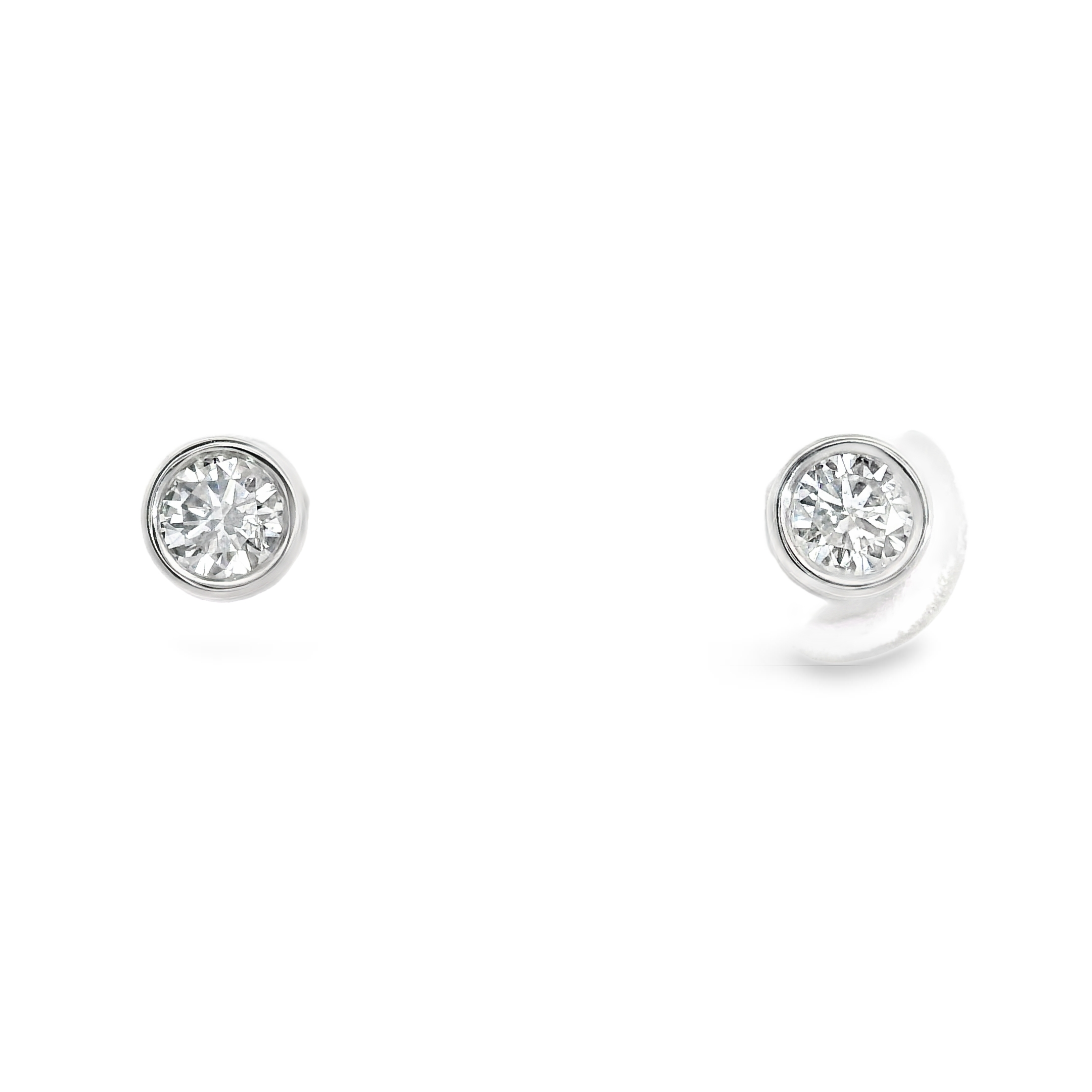 These classic diamond stud earrings are bezel set with 2 diamonds totaling 0.38 ct tw.