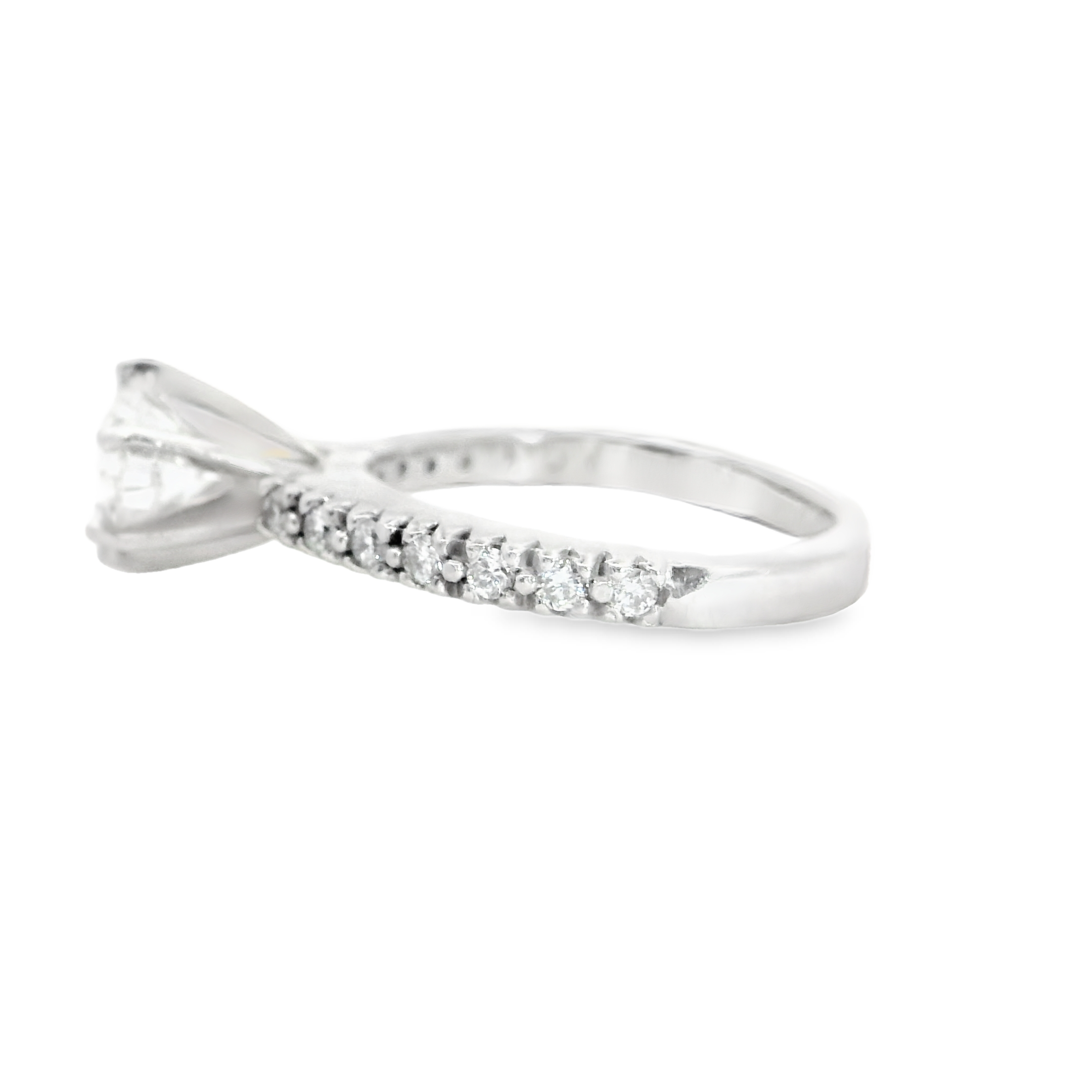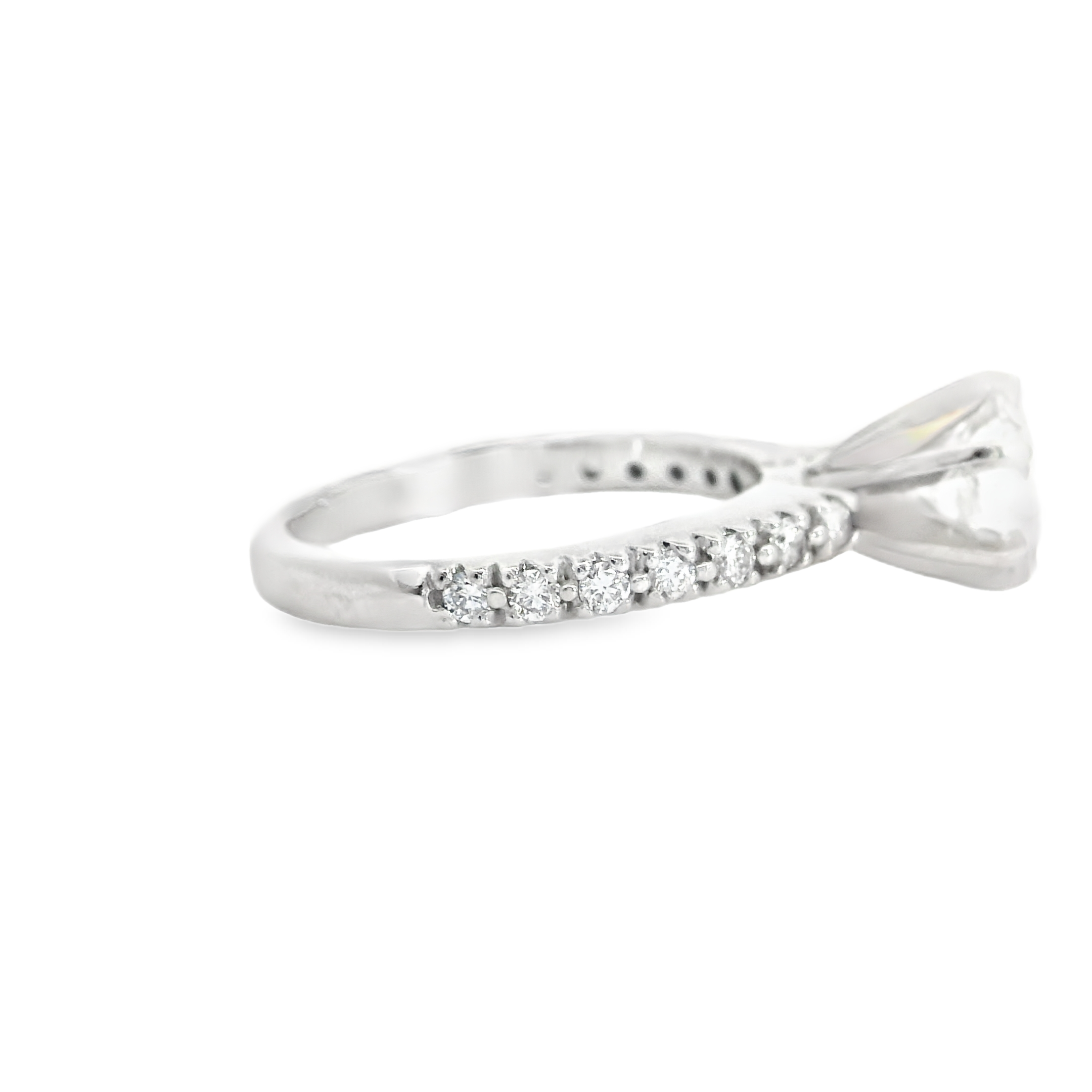THIS PRINCESS CUT MOUNTING IS A CLASSIC!!! WITH 14K WHITE GOLD PRONG SET DIAMOND DETAILING ON THE SIDES OF THE ENGAGEMENT RING 0.21 CT TW. Center stone sold separately