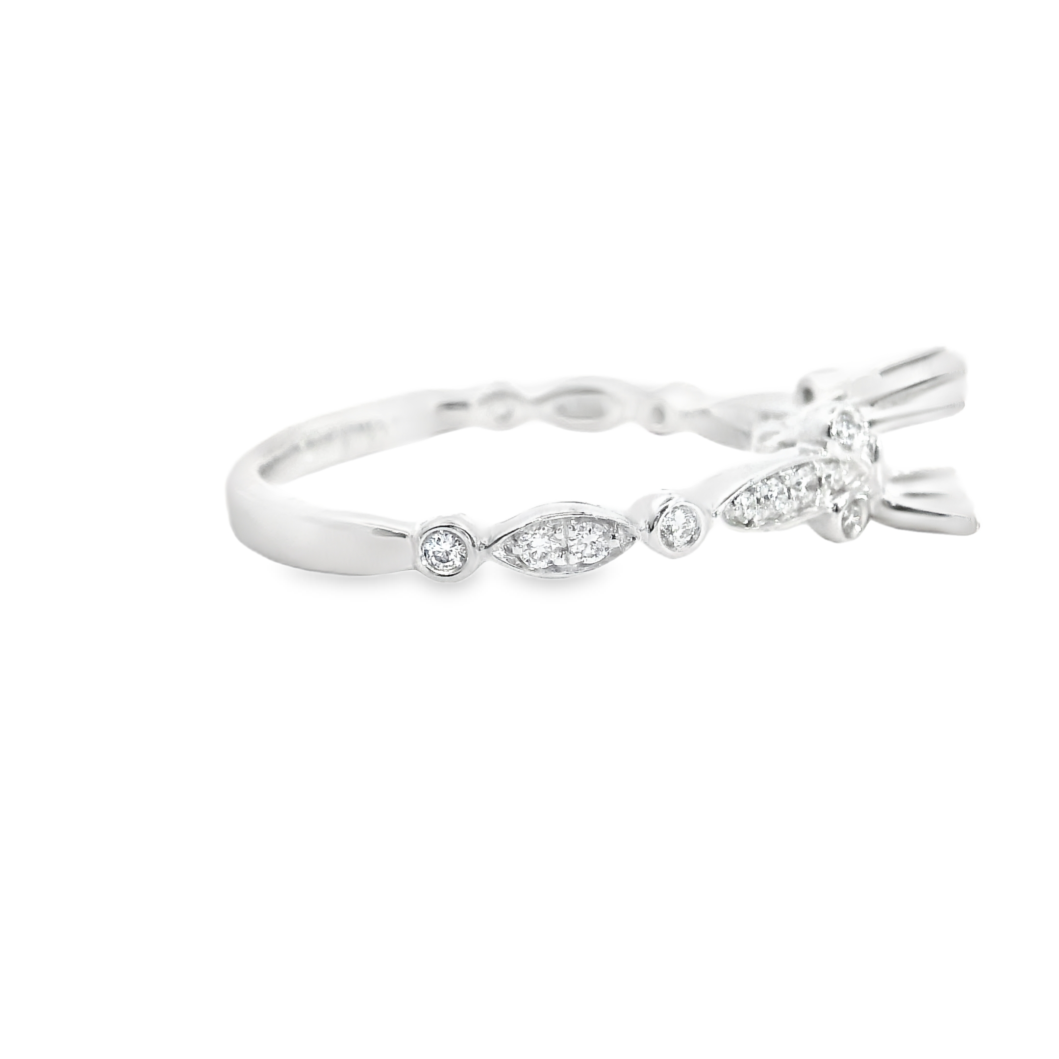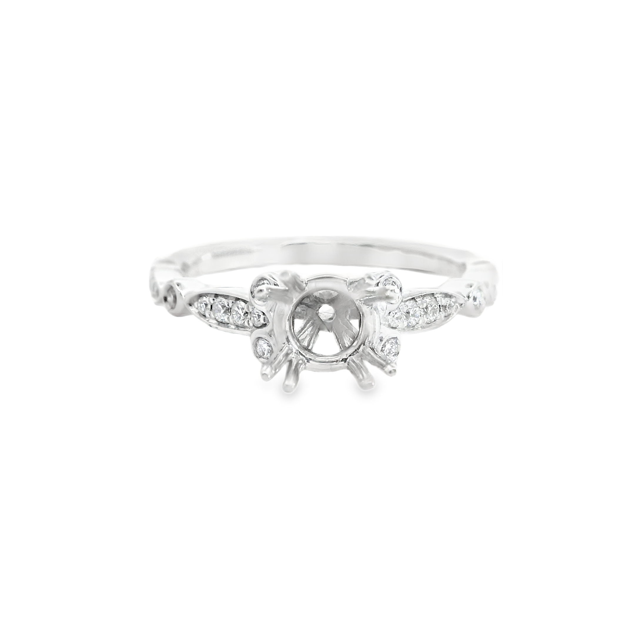 14K WHITE GOLD ANTIQUE STYLE DIAMOND MOUNTING 0.16 CT TW