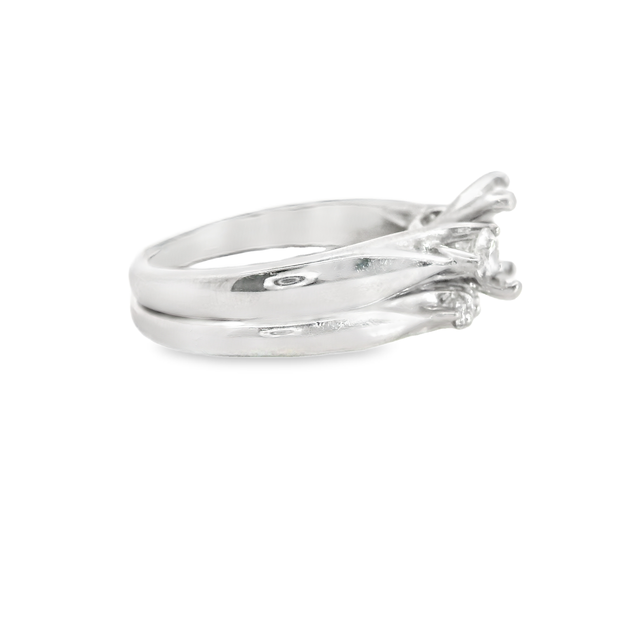 WHEN ONE IS NOT ENOUGH, CHECK OUT THIS STUNNING 3-STONE 14K WHITE GOLD ESTATE DIAMOND ENGAGEMENT RING SET 0.54 CT TW DIAMONDS IN BOTH THE ENGAGEMENT RING AND THE WEDDING BAND. Center stone sold separately.
