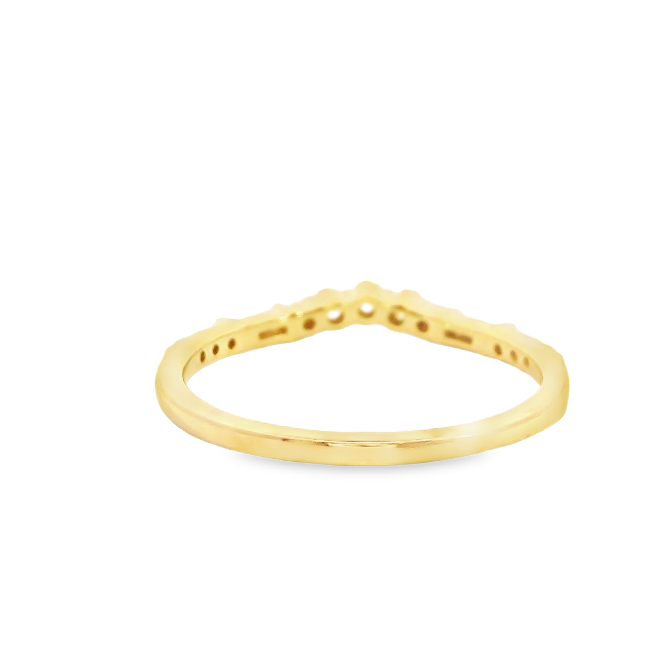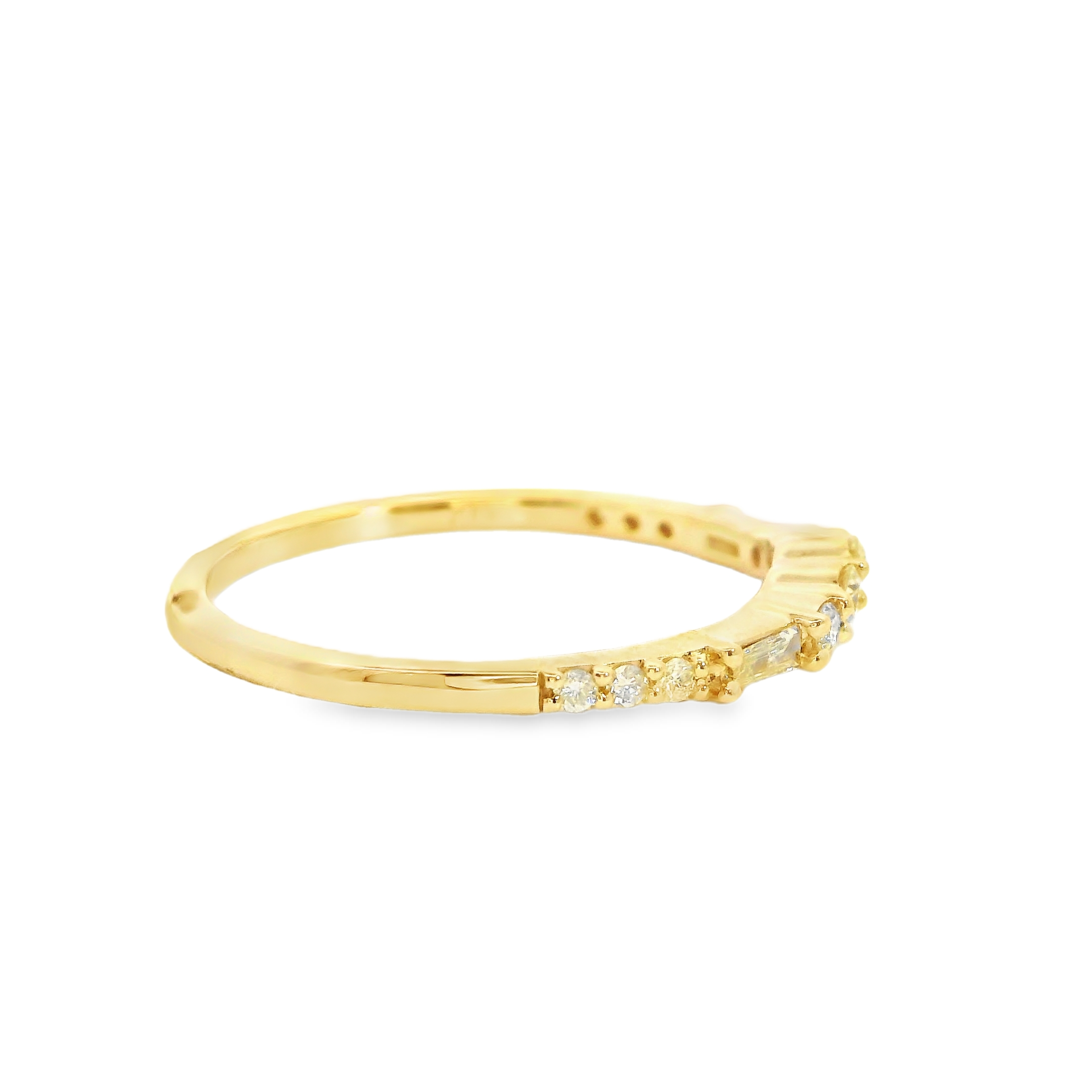 14k YG curved diamond band with baguette and round cut diamonds set in the curved band totaling 0.21 ct tw.