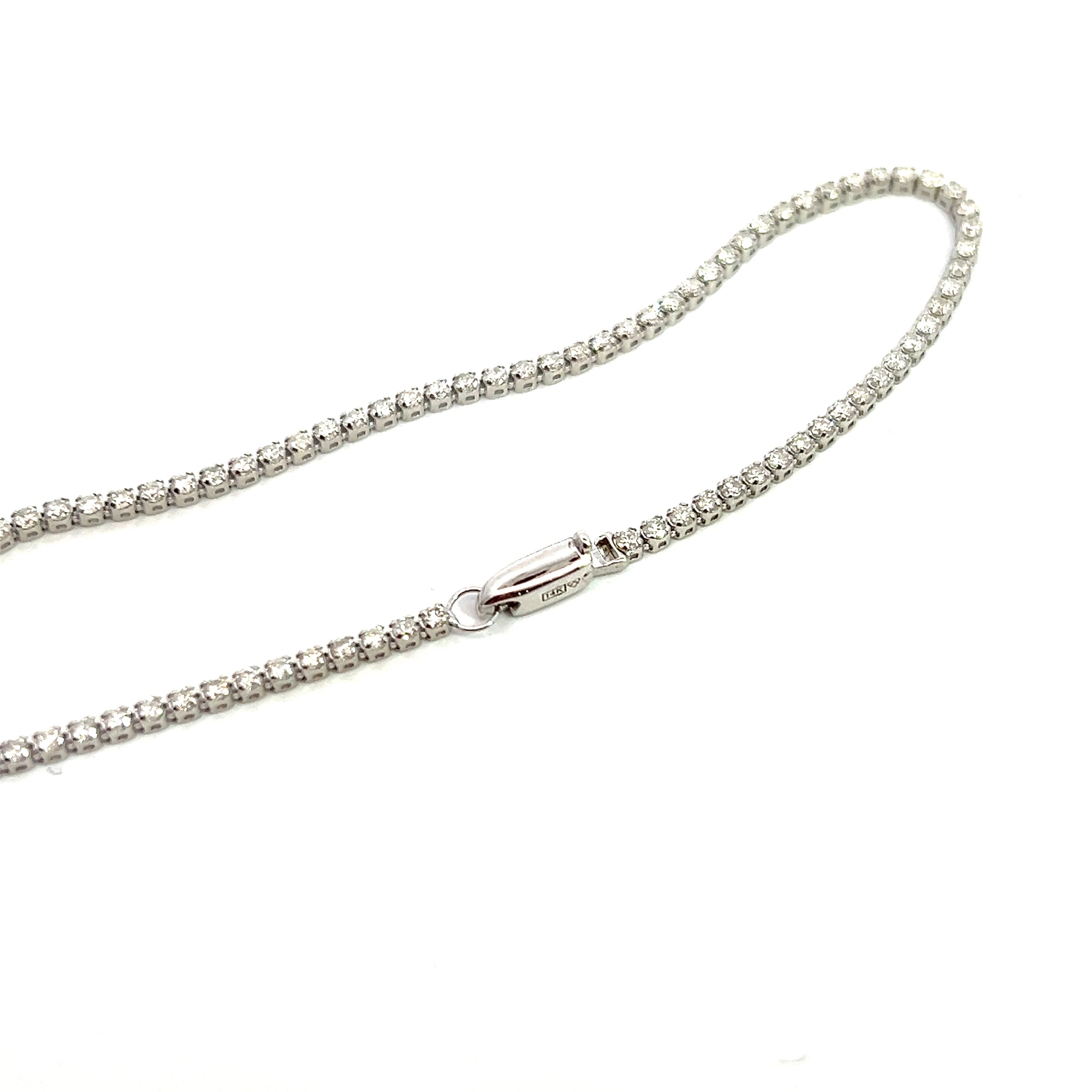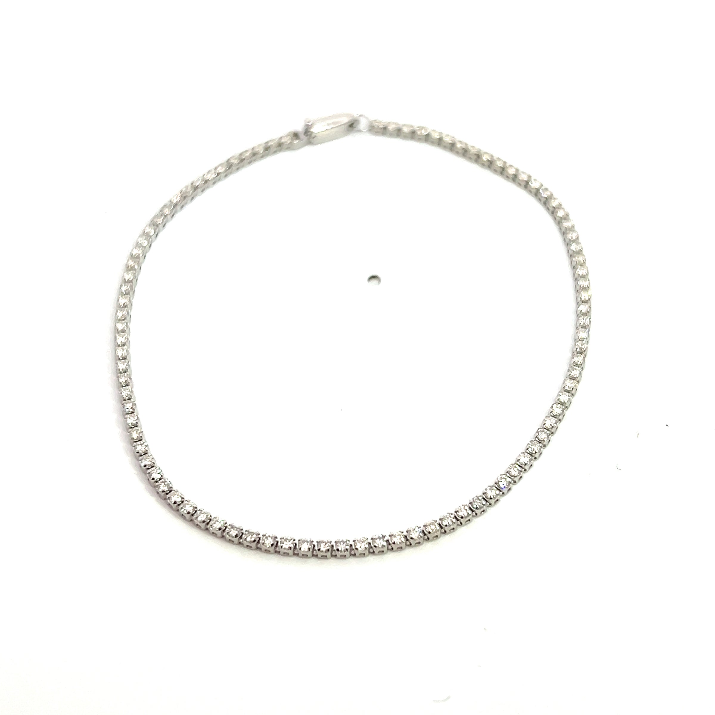 This classic tennis bracelet is a "micro" tennis bracelet with small diamonds prong set across the yellow gold bracelet. The diamonds total 1.00 CT TW. It is 7" in total length.