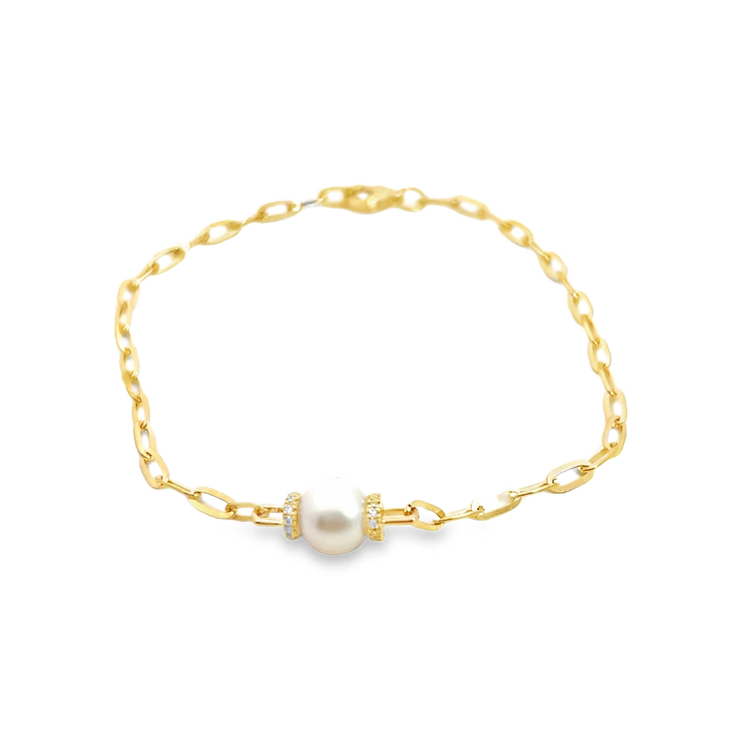 14K YG Pearl & Diamond Bracelet
