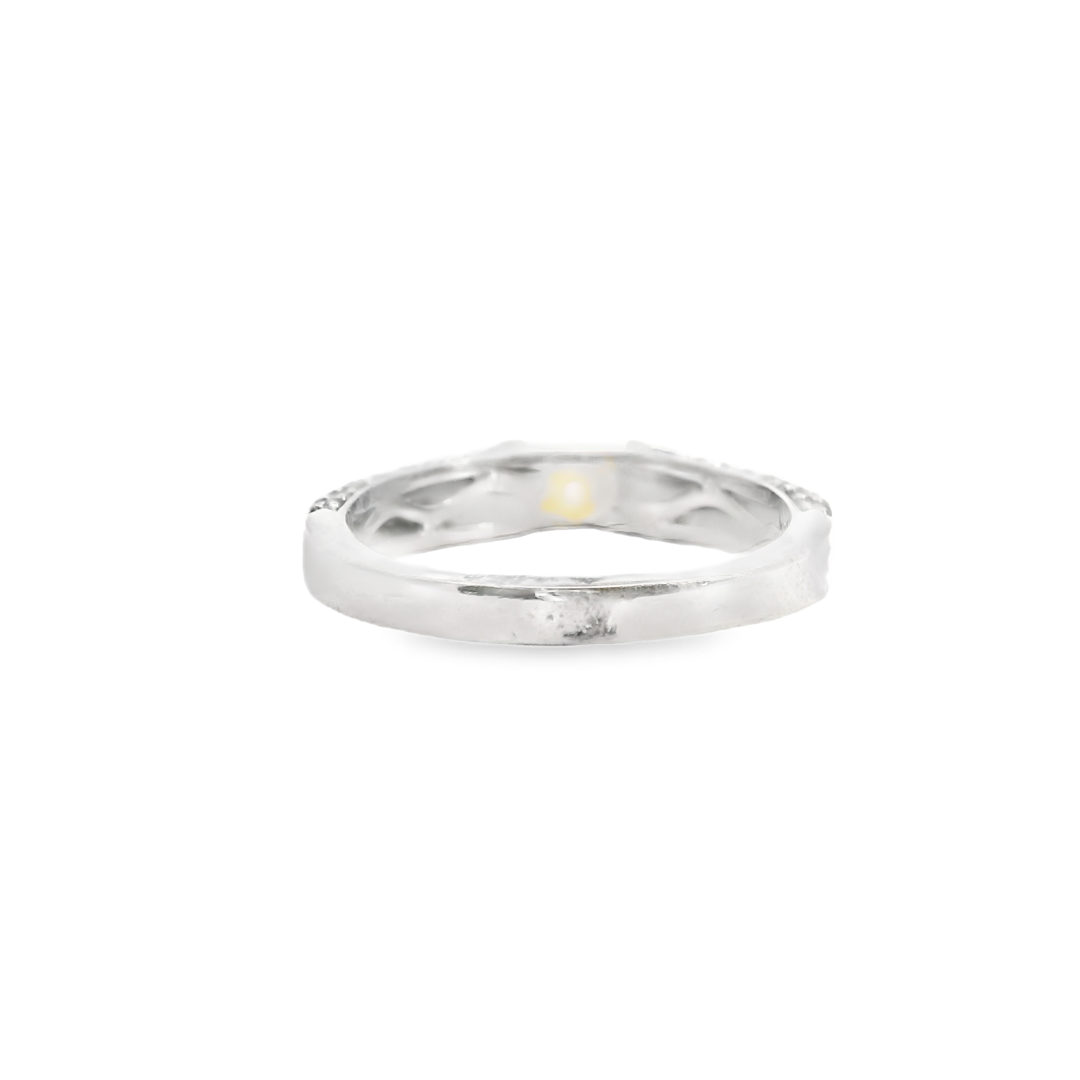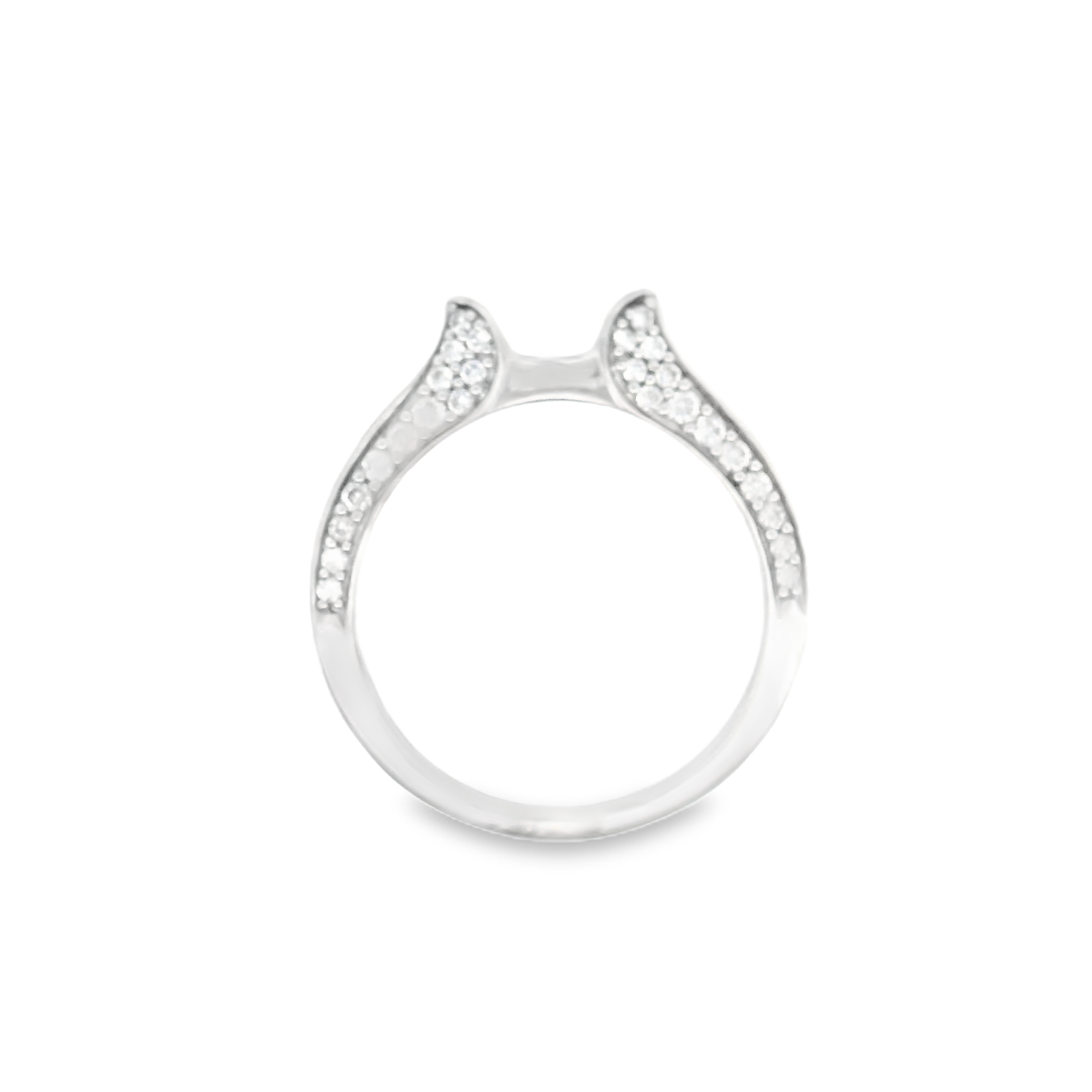 18K WHITE GOLD DIAMOND ENGAGEMENT SEMI-MOUNT RING 0.38 CT TW. ROUND PRONG SET DIAMONDS ALONG PROFILE OF BAND.