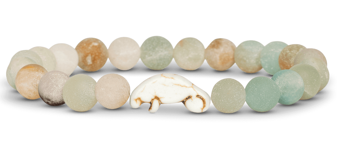 This stretch Fahlo bracelet in sky stone with manatee center detail comes with it's own real live manatee to track!