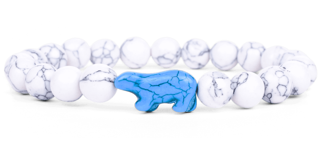 This stretch Fahlo bracelet in arctic white with polar bear center detail comes with it's own real live polar bear to track!