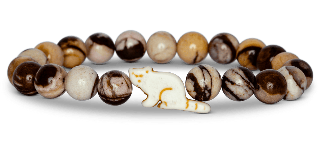 This stretch Fahlo bracelet in himalaya stone with red panda center detail comes with it's own real live red panda to track!