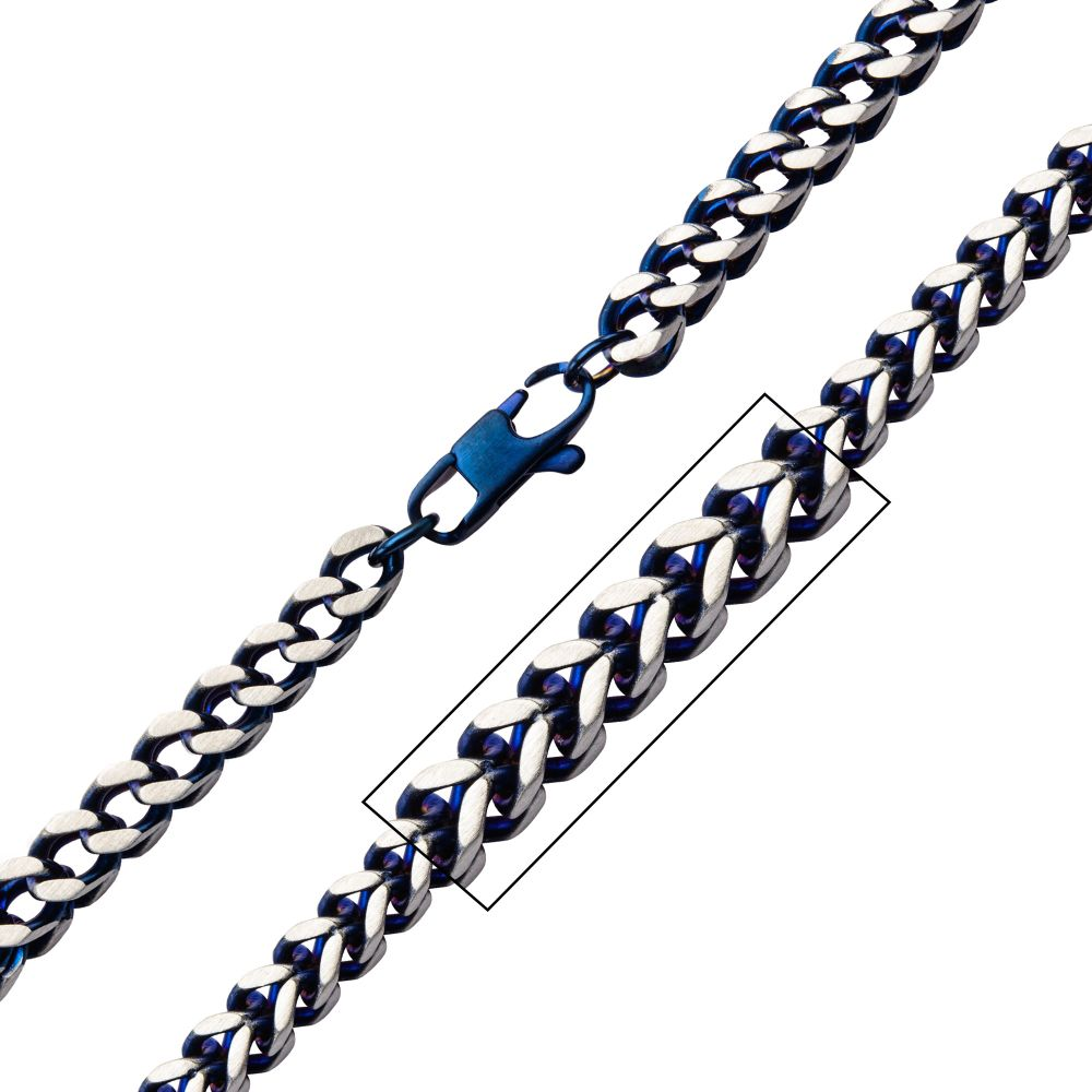 Men's Stainless Steel Blue IP 5mm Franco Chain Bracelet with Lobster Claw Clasp. Included in Denim Fade Collection 8.5" long, NSTC7624B-22- Stainless Steel Blue IP Franco Chain Necklace with Lobster Claw Clasp. Included in Denim Fade Collection 22 inch long.